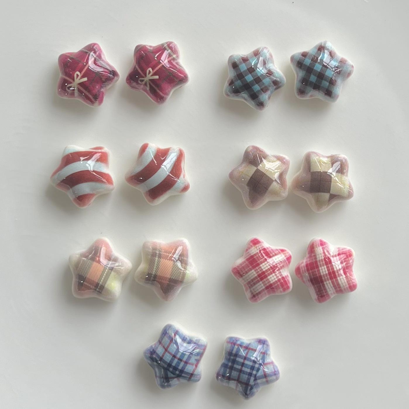 Nuevo Retro a Cuadros Estrella de Cinco Puntas Accesorios DIY Horquilla Accesorios Pegamento Crema Funda para Teléfono Móvil Flor para Zapato Material para Accesorios al por Mayor