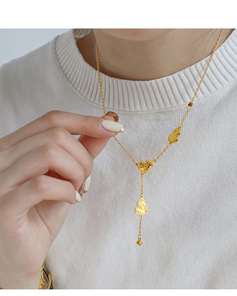Collar de calabaza con borlas simple y moderno, de alta gama, retro, ligero, de lujo, exquisito, combina con todo, elegante, con cadena de clavícula.
