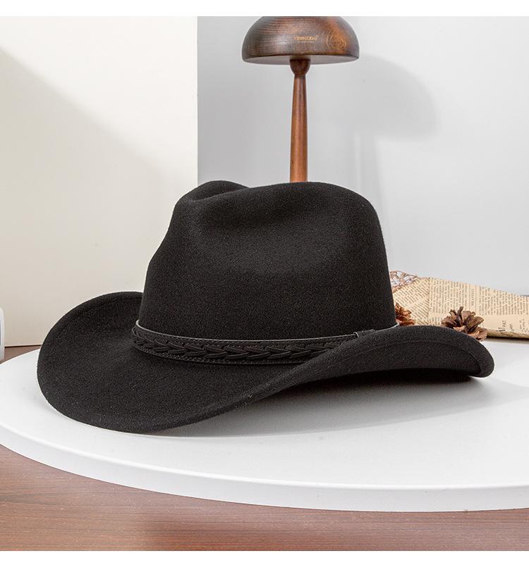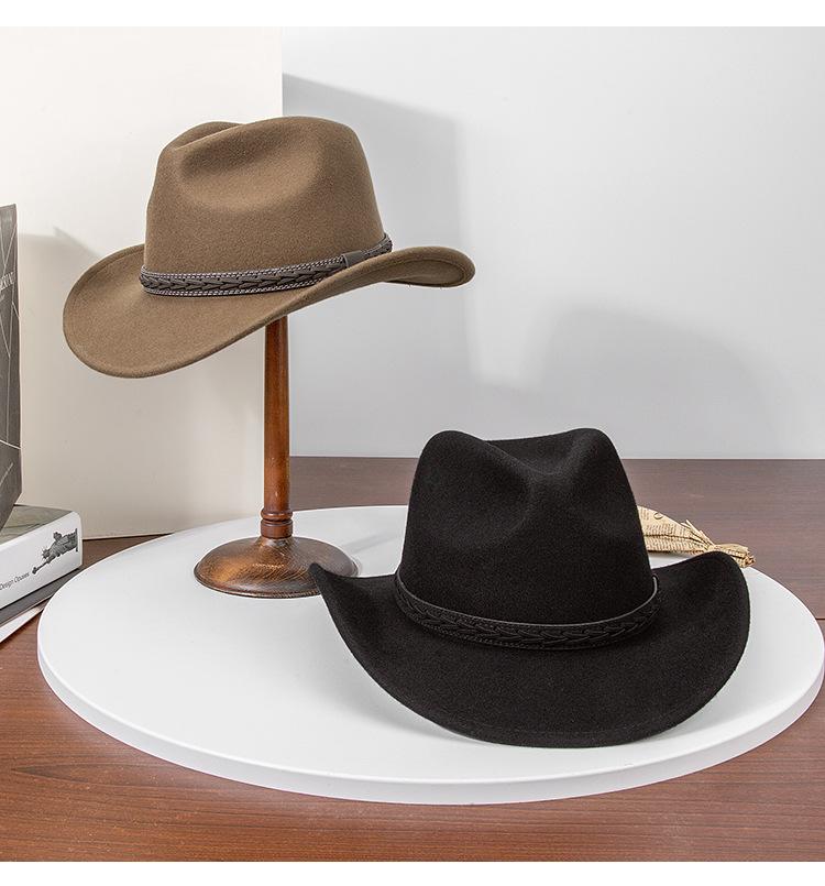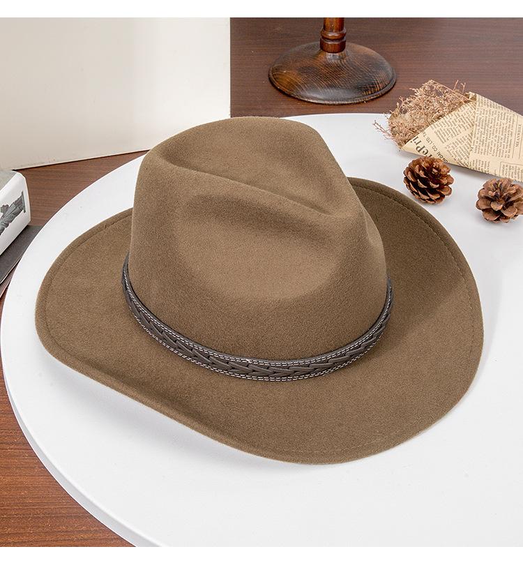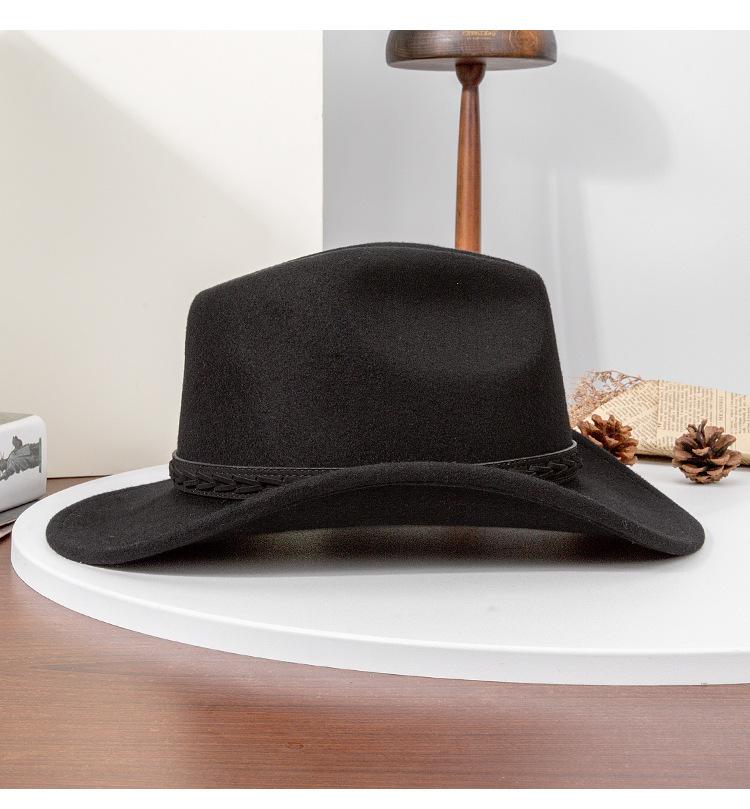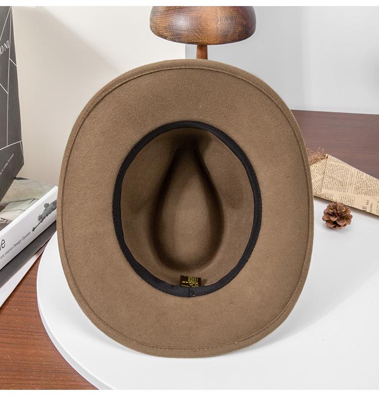 Transfronterizo 2025 Linglong Otoño e Invierno Nuevo Sombrero Vaquero Occidental de Lana de Ala Ancha Grande Retro Europeo y Americano Sombrero de Jazz para Exterior