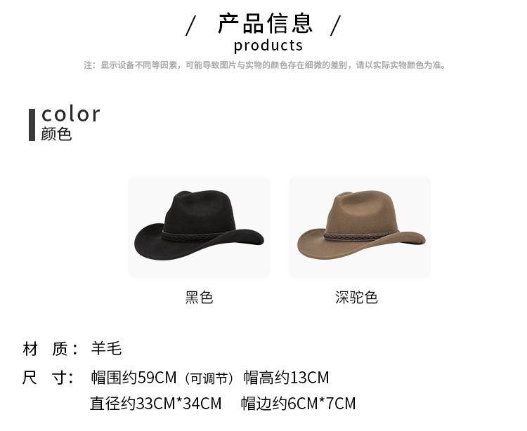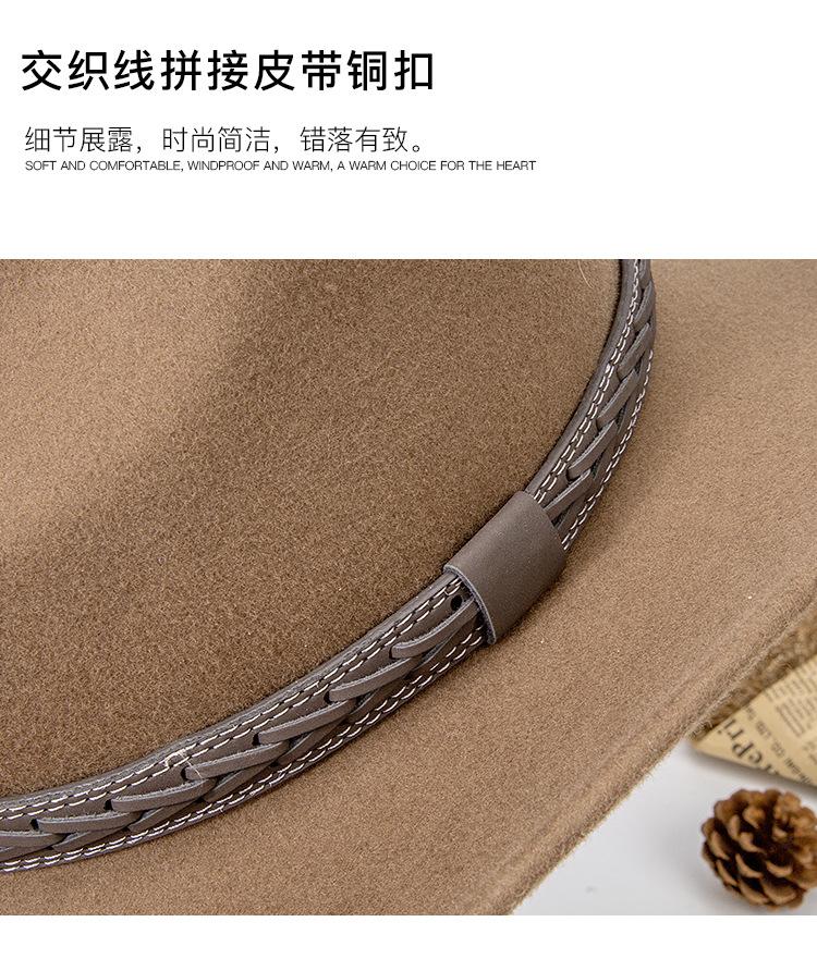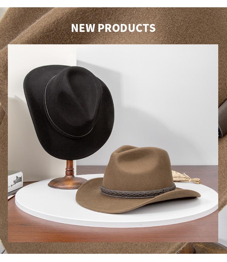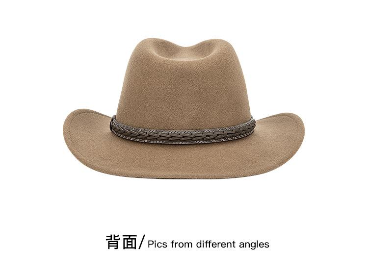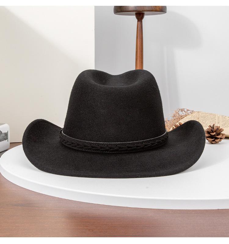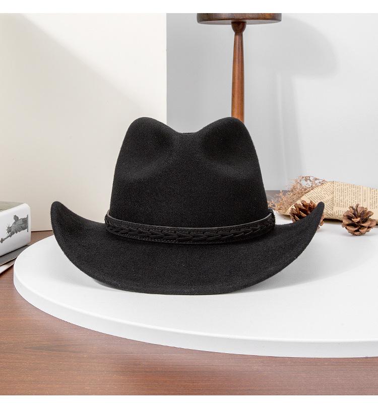 Transfronterizo 2025 Linglong Otoño e Invierno Nuevo Sombrero Vaquero Occidental de Lana de Ala Ancha Grande Retro Europeo y Americano Sombrero de Jazz para Exterior