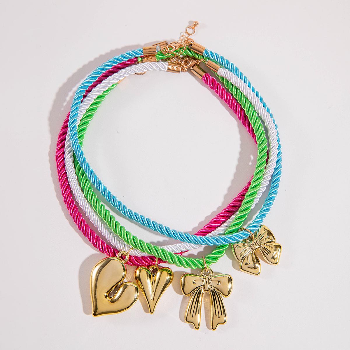 Collar de cuerda con colgante de lazo de amor, estilo transfronterizo de Amazon, cadena de clavícula, color simple, para mujer