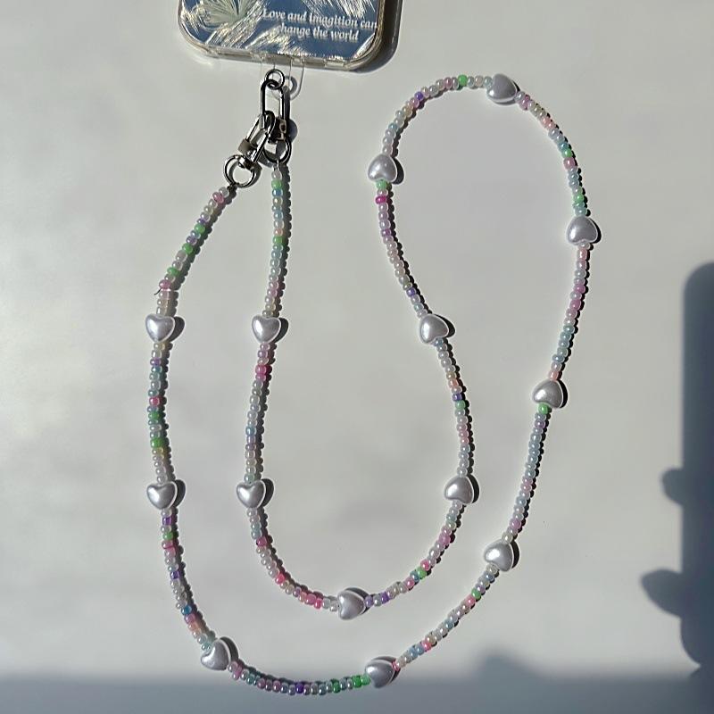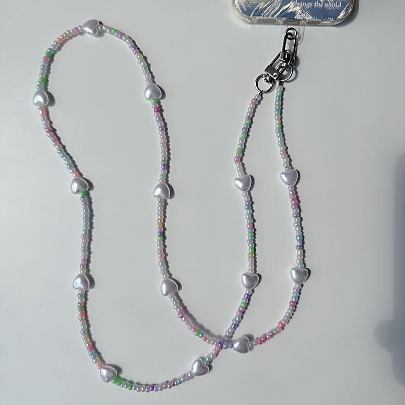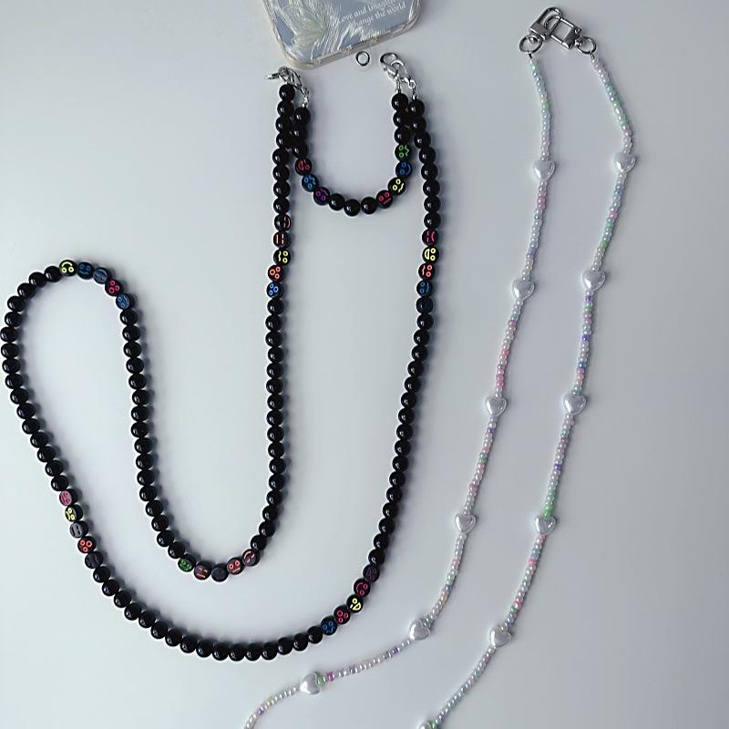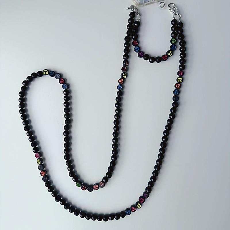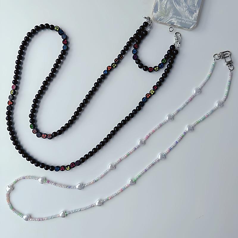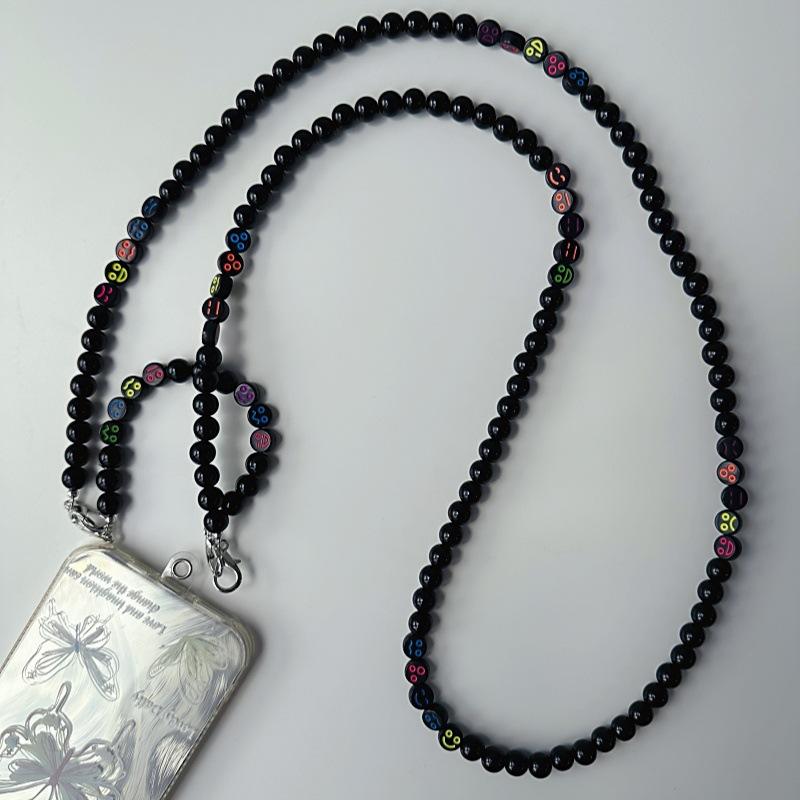 Cordón para teléfono móvil personalizado con cuentas redondas negras, cadena cruzada larga con clip sin orificios, colgante cruzado para mujer