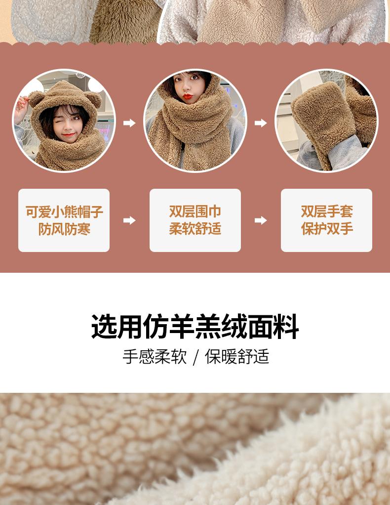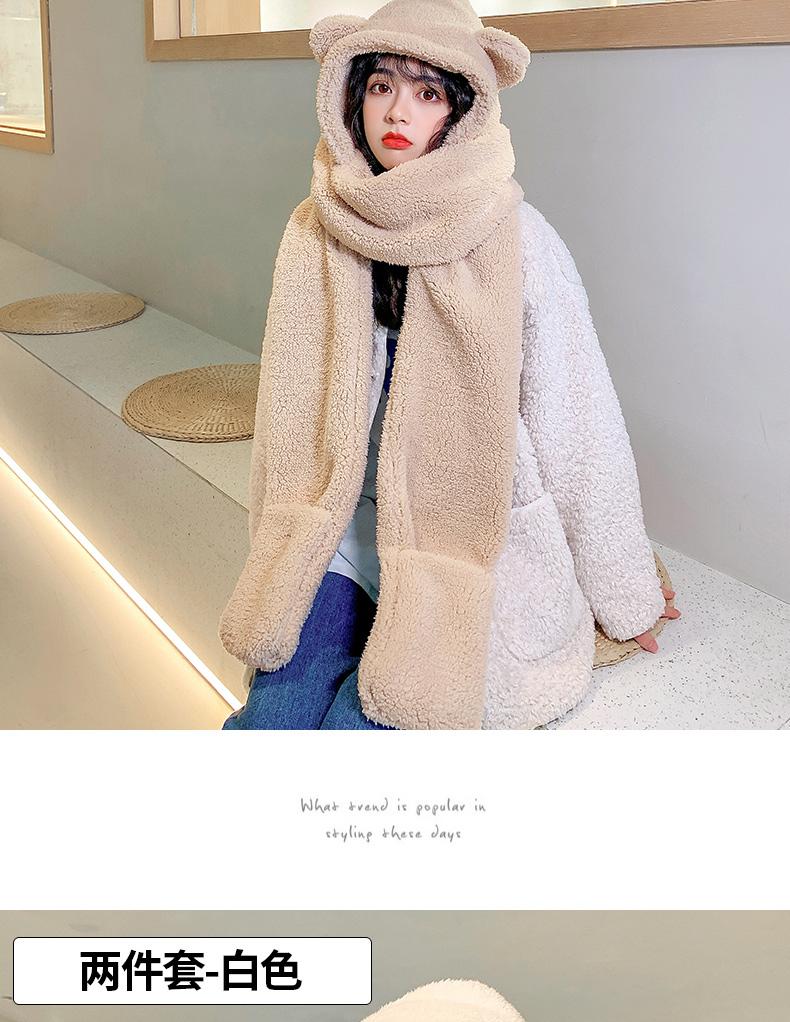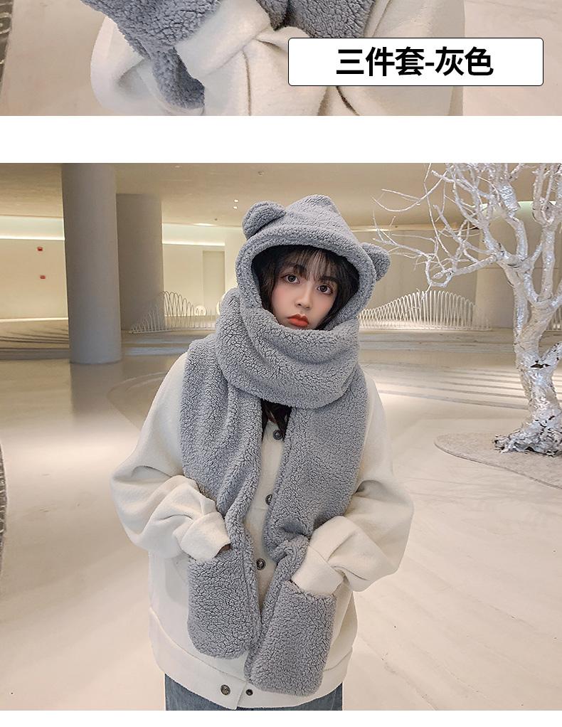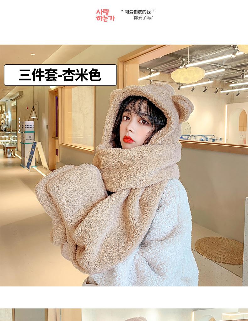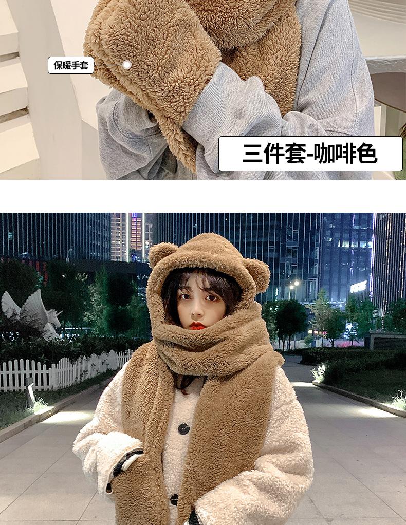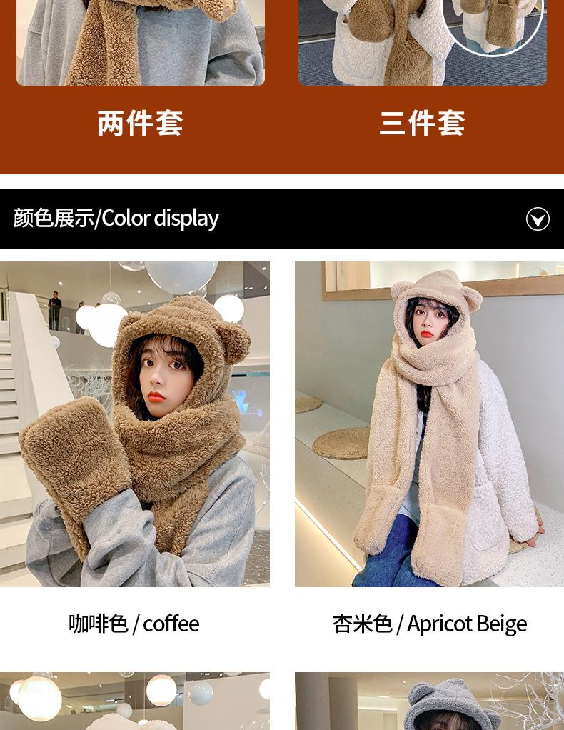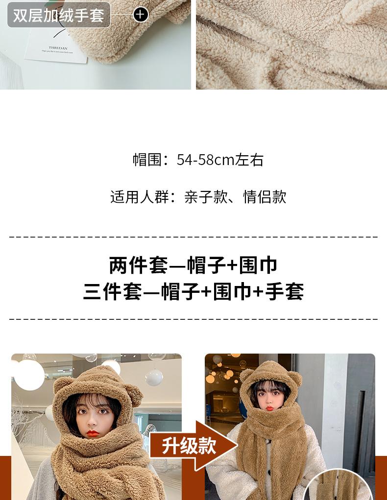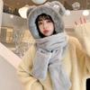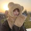 Gorro con protección para las orejas de oso de invierno, bufanda para mujer, otoño e invierno, combinable, bonito, con capucha, de felpa, cálido, coreano, de moda.