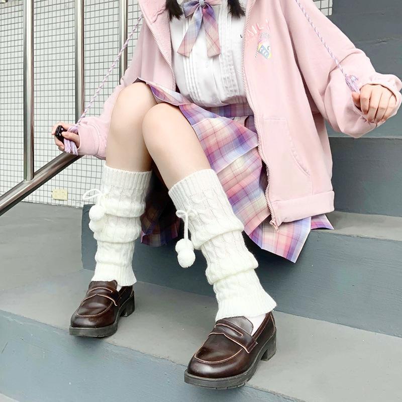 Calcetines de botas de lana hasta la rodilla para pantorrilla para mujer Lolita de media caña otoño e invierno cálidos gruesos a la moda estilo coreano