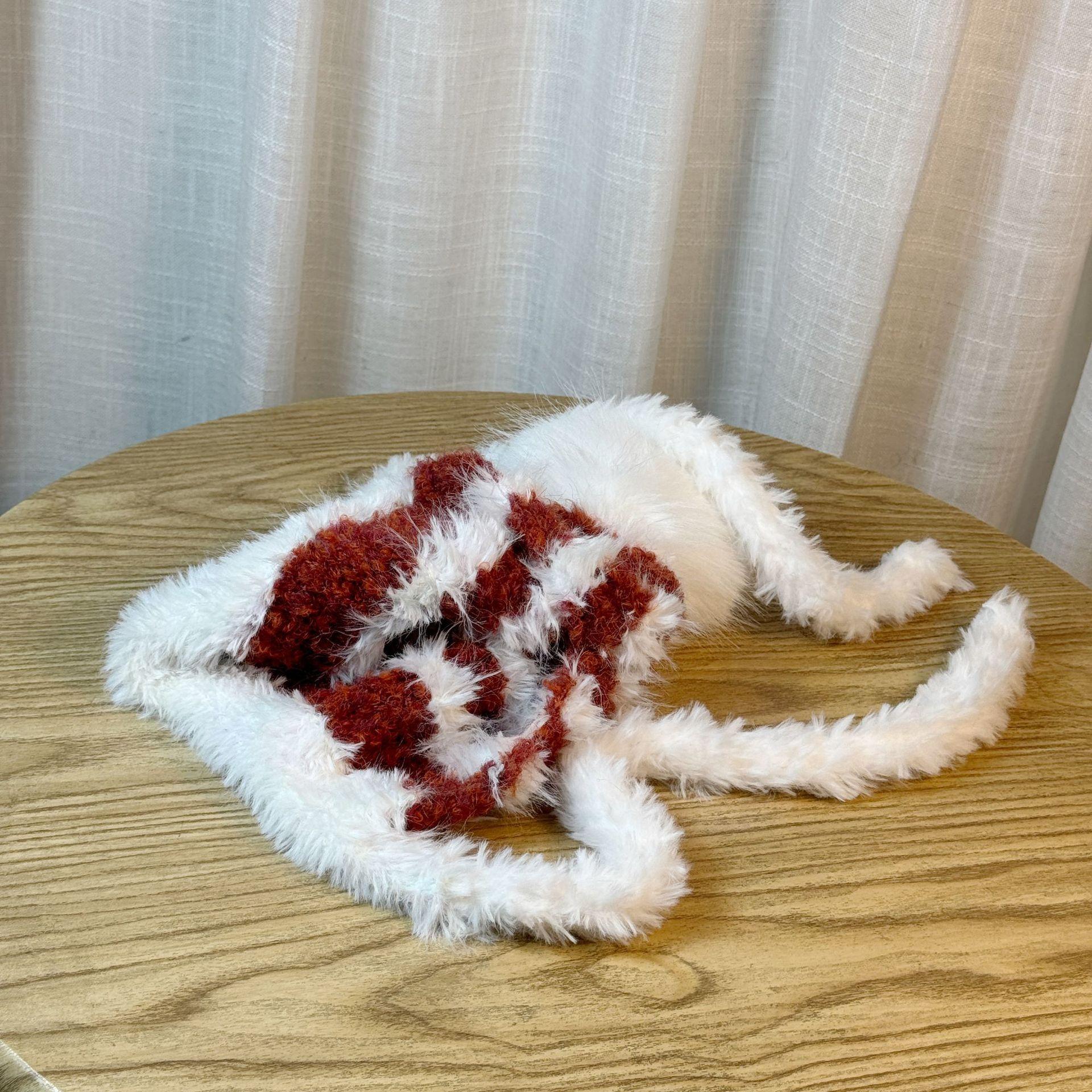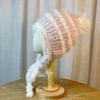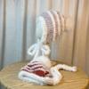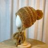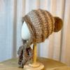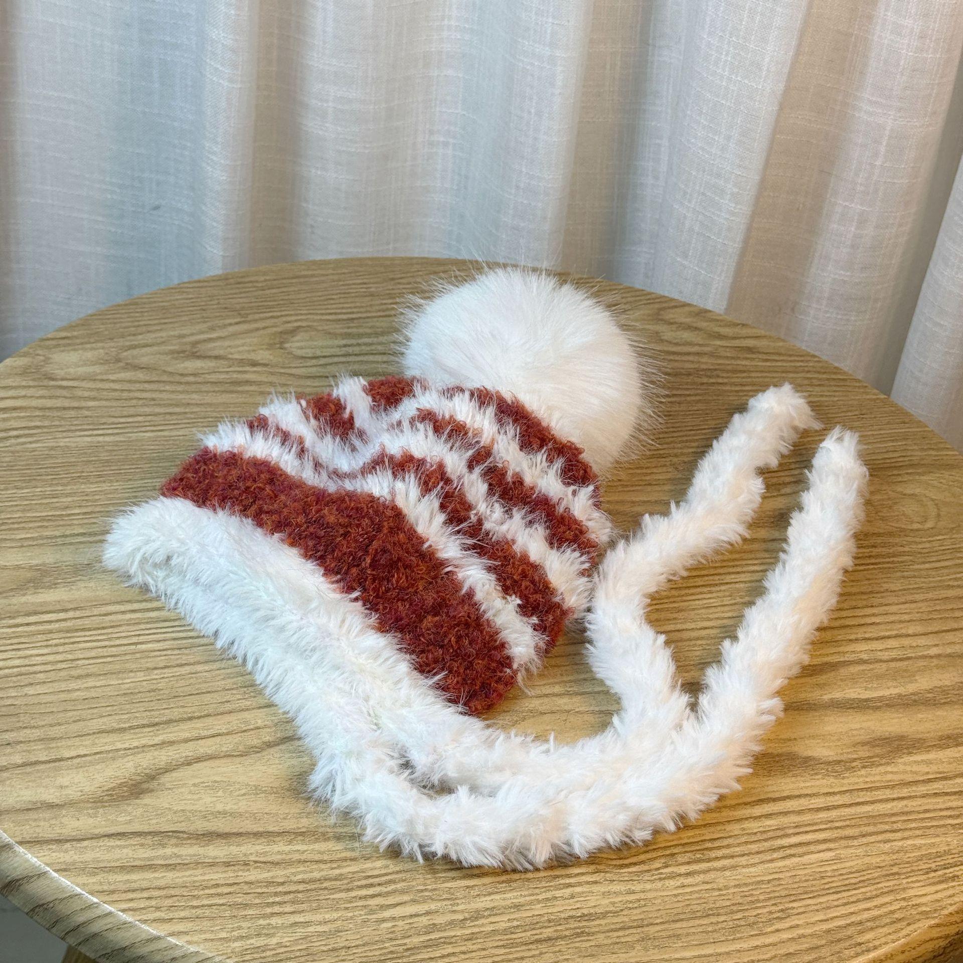 Gorro tejido esponjoso a rayas con combinación de colores para mujer, otoño e invierno, grueso, cálido, con protección para las orejas, con correa, combina con todo, a prueba de frío, estilo Lei Feng