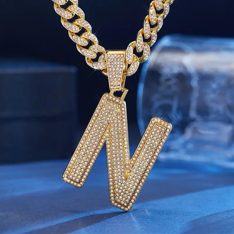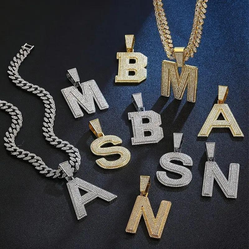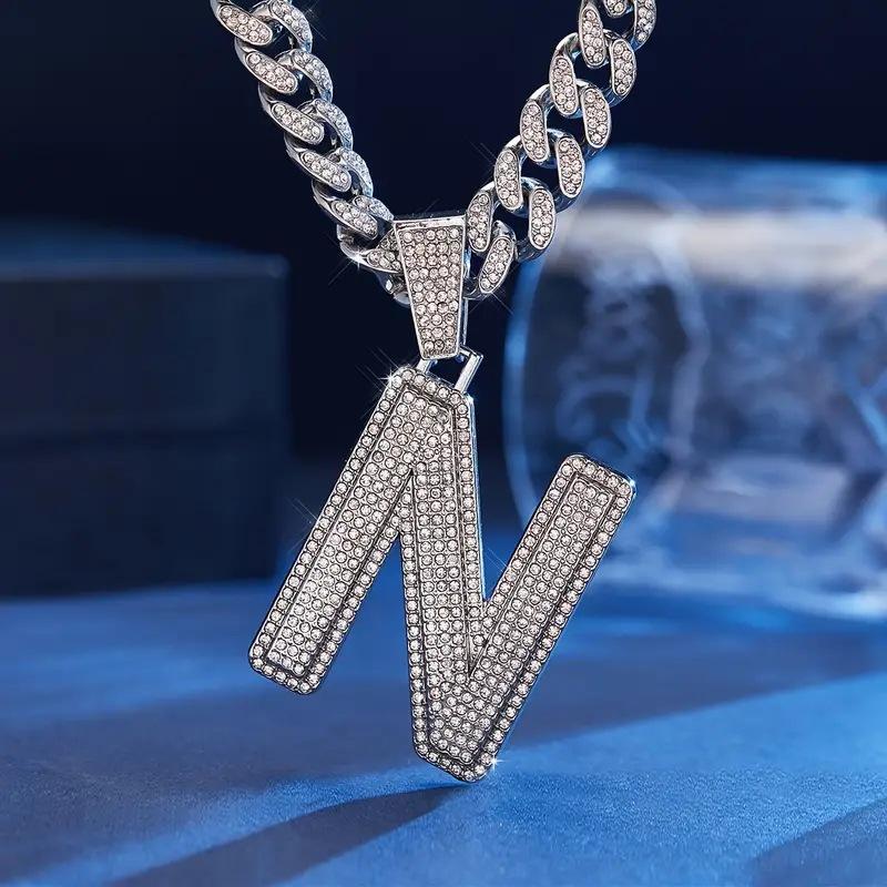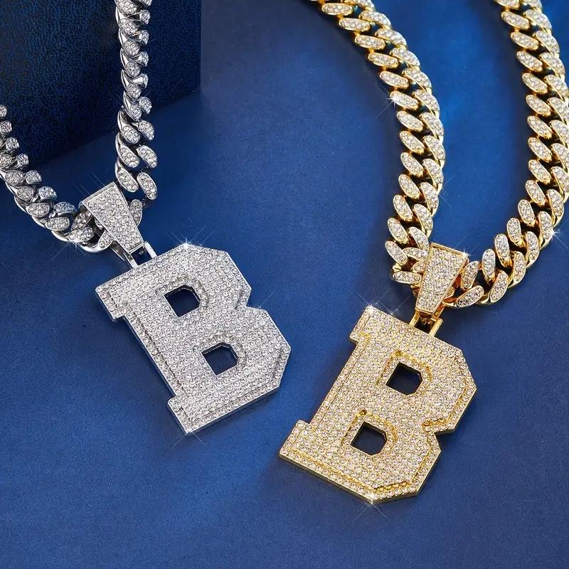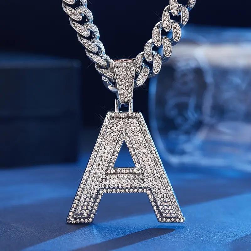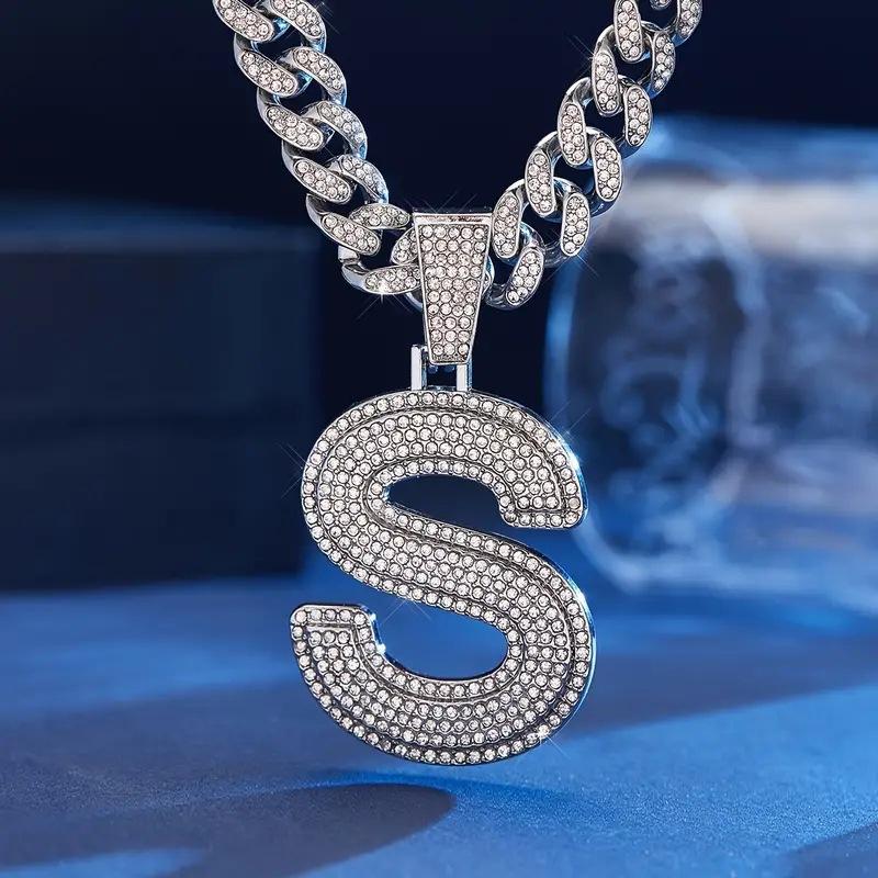 Collar de cadena cubana de hip-hop moderno para hombre, joyería de aleación personalizada con colgante de letra inglesa para mujer, más vendido en Europa y América