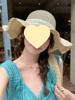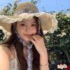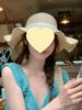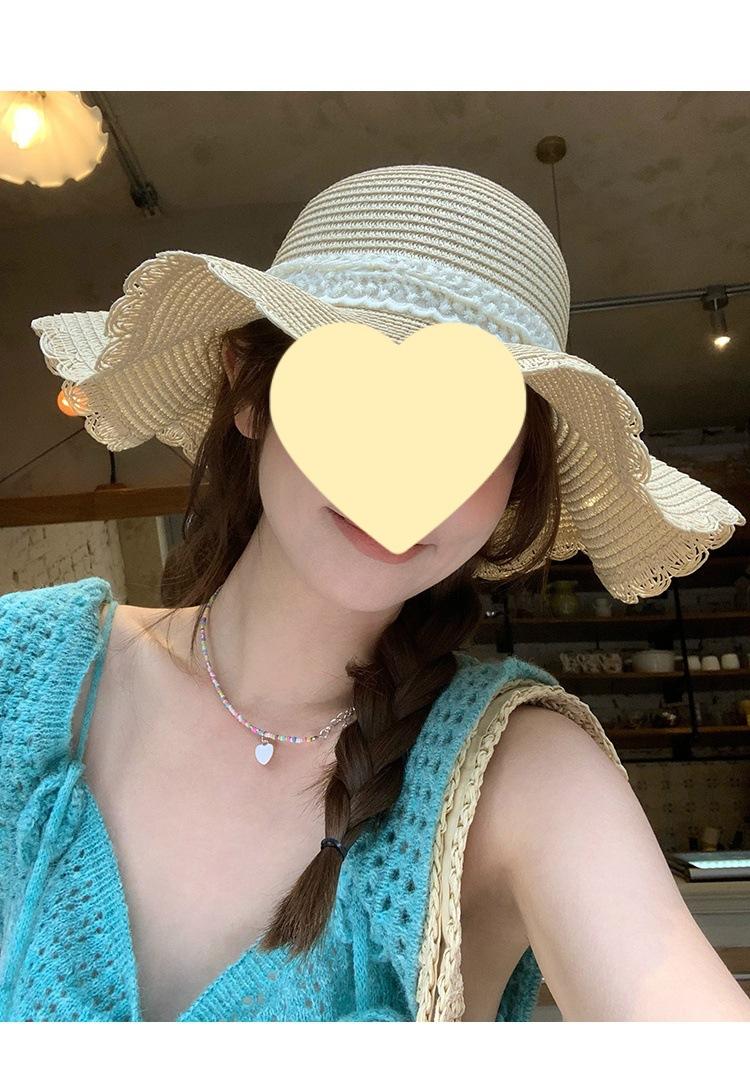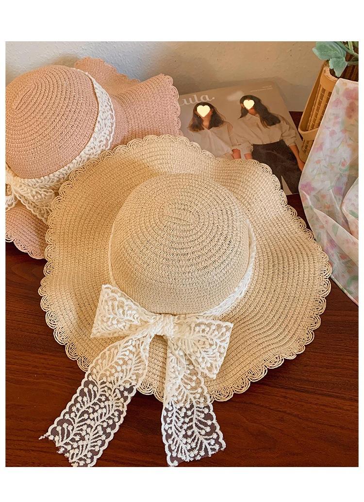 Sombrero de Paja con Lazo de Encaje de Borde Ondulado para Mujer Verano Ala Ancha Tejido Sombrero para Vacaciones en la Playa Junto al Mar Sombrero para el Sol