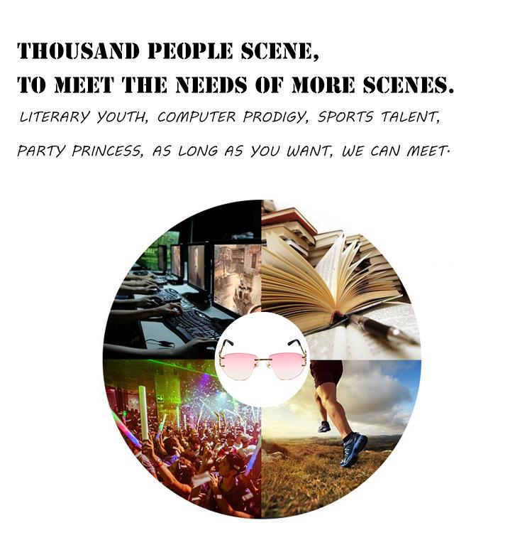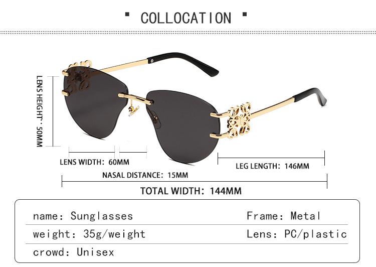Gafas de sol de alta moda 2024 con personalidad, sin marco, de metal, con protección solar y borde cortado, modernas y transfronterizas.