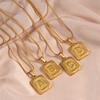 Collar de acero inoxidable con doce constelaciones para mujer, con diseño transfronterizo europeo y americano, chapado en oro de 18 quilates, cadena de clavícula con colgante cuadrado de acero de titanio indecolorable