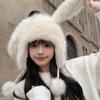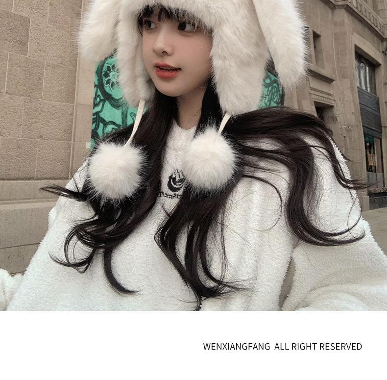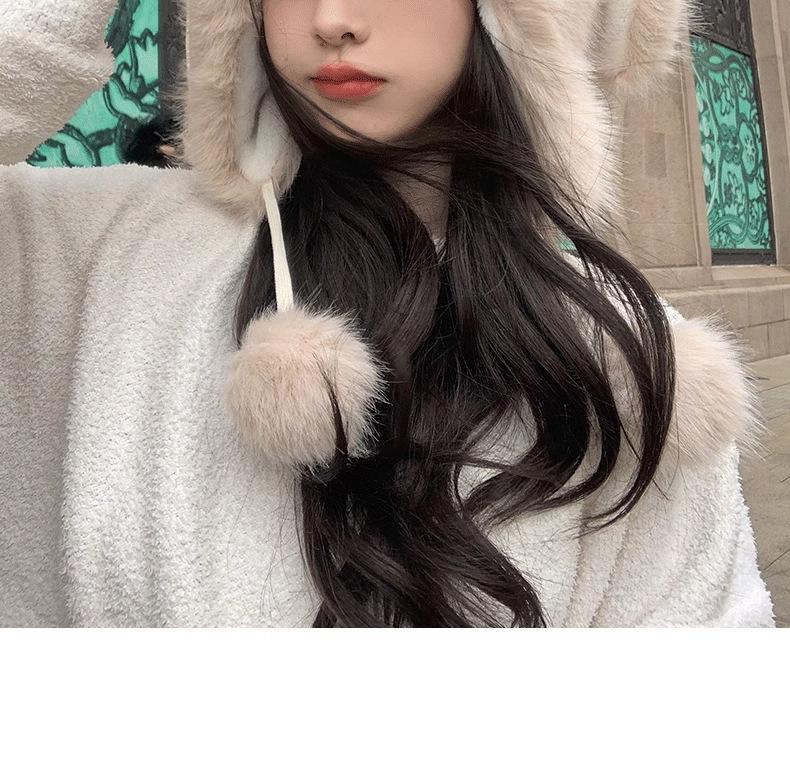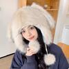 Sombrero de Felpa con Orejas de Conejo para Mujer, Bufanda Gruesa Caliente de Invierno con Protección para las Orejas Integrada, Sombrero Lei Feng, Estilo Europeo y Americano