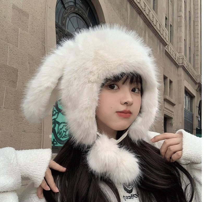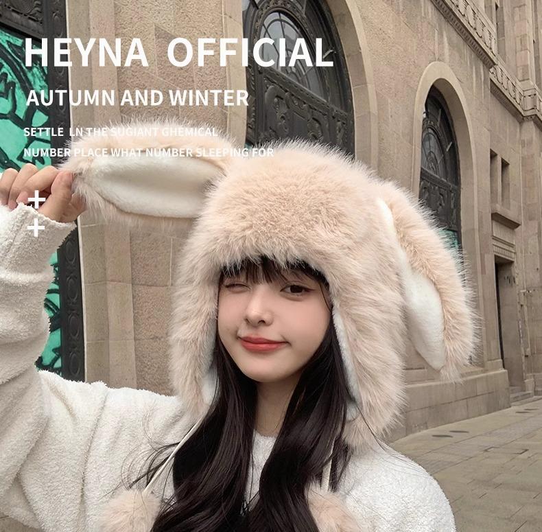 Rabbit ears plush lei feng hat [milk white], Rabbit ears plush lei feng [khaki], Rabbit ears plush lei feng [c...