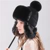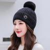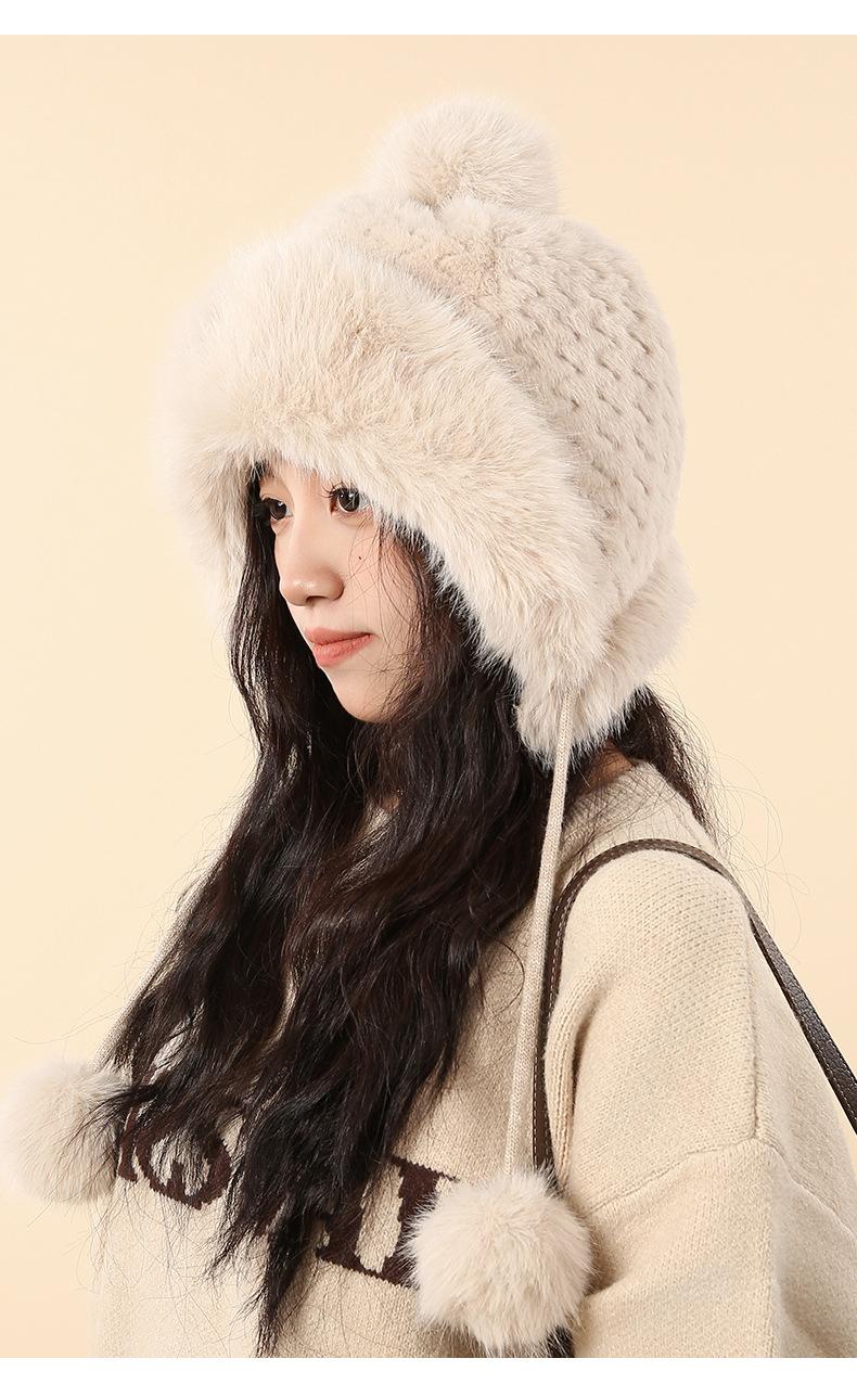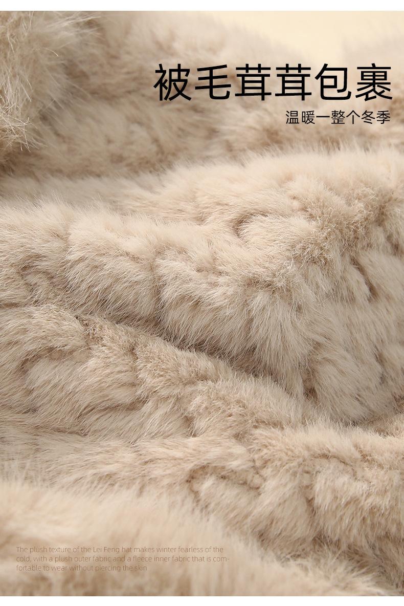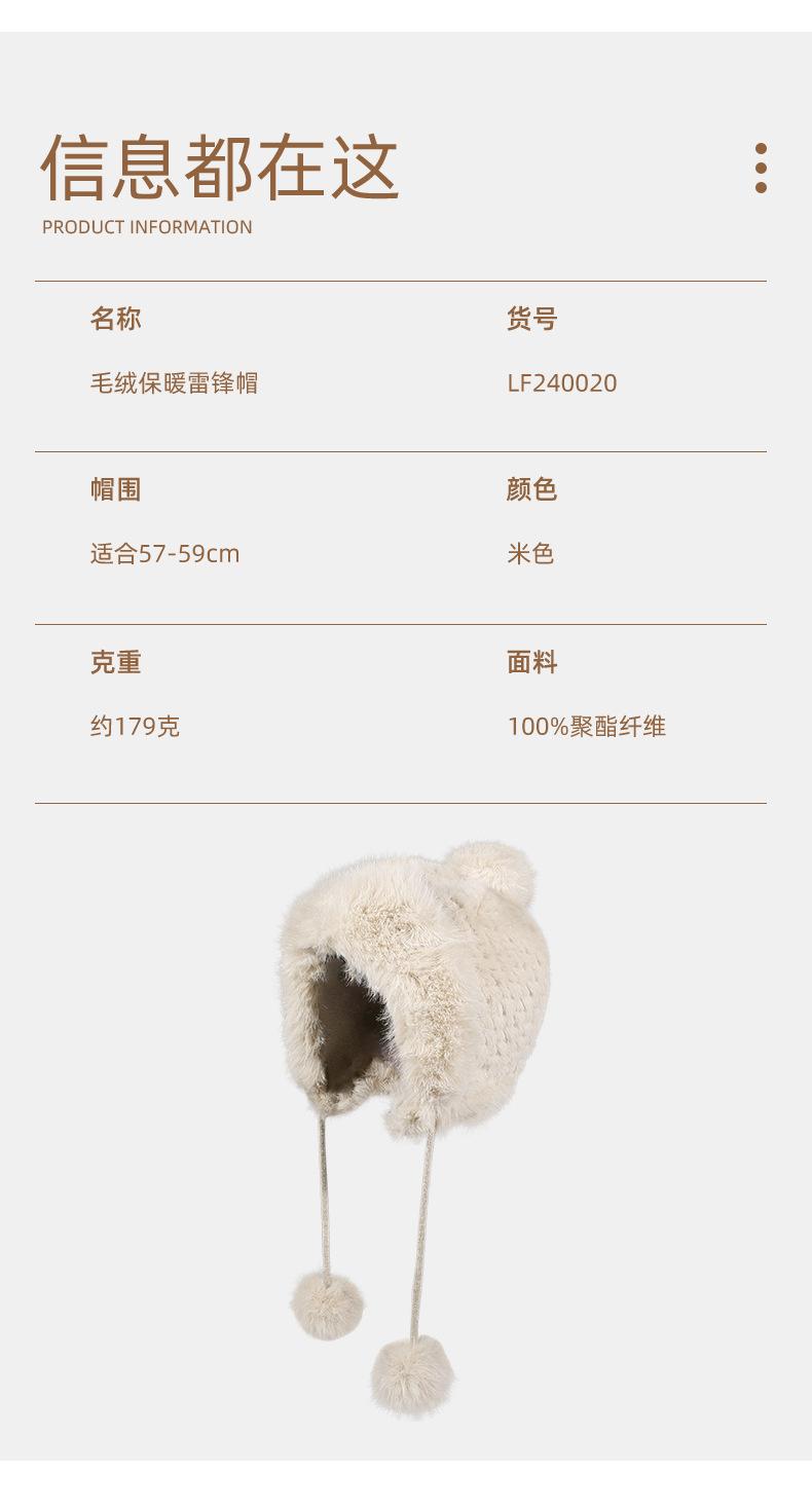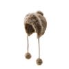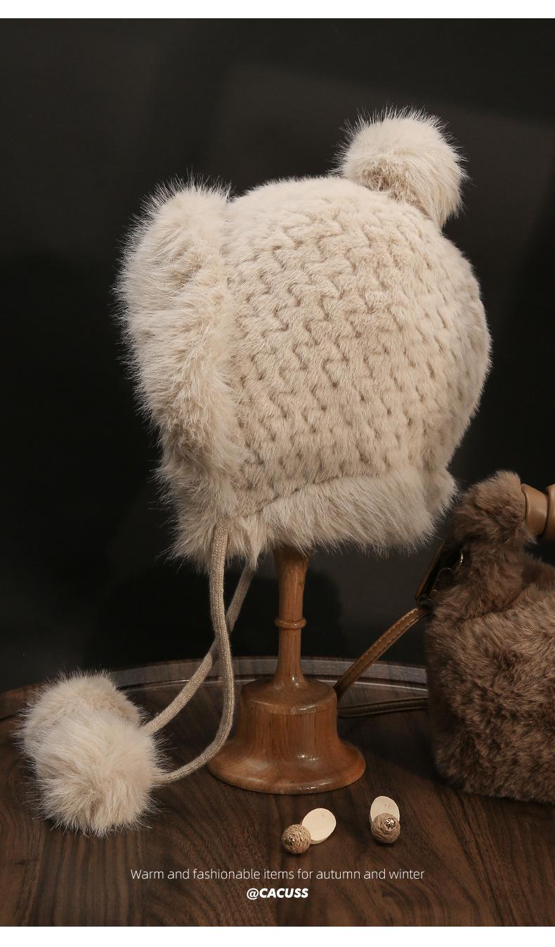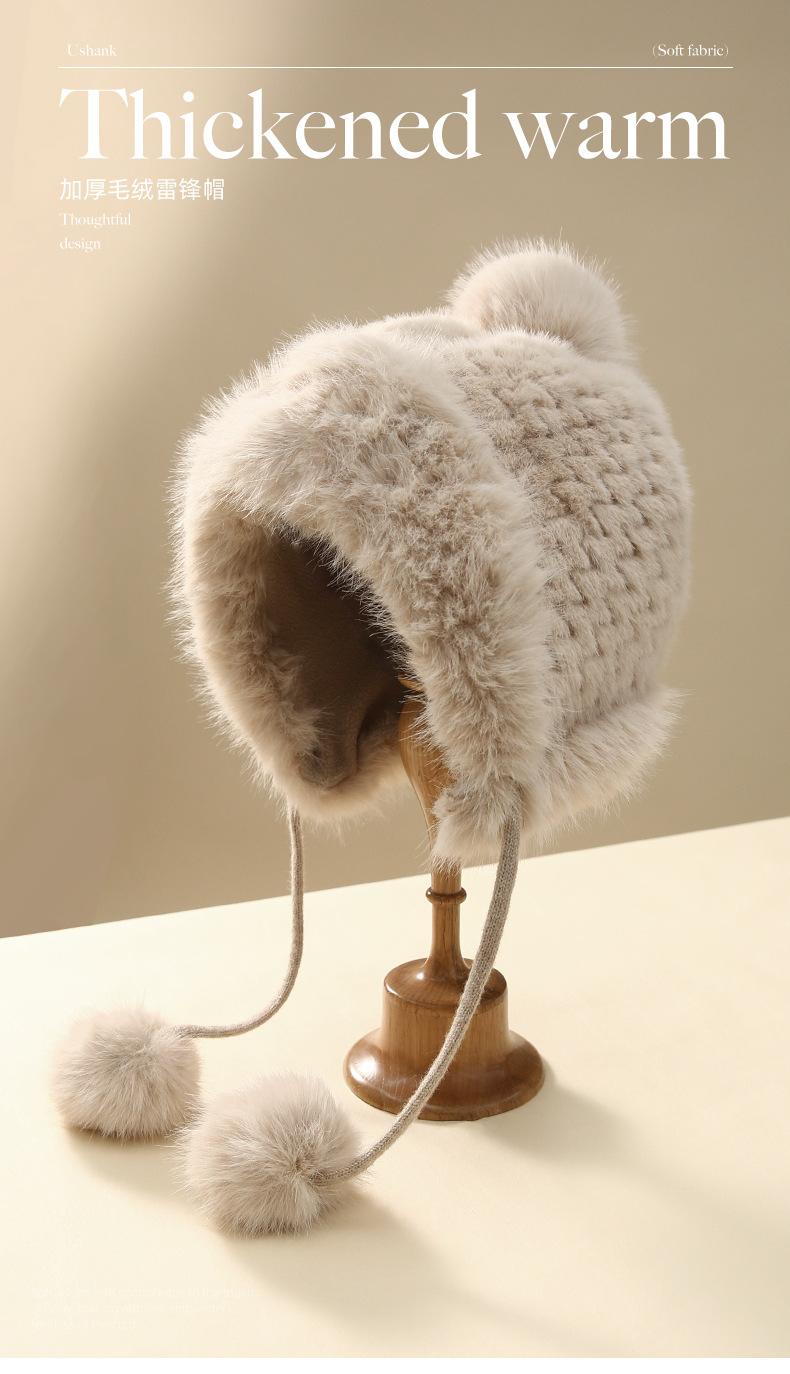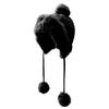 Gorro Lei Feng grueso a prueba de frío para otoño e invierno, gorro cálido de felpa para mujer, gorro de orejeras a prueba de viento con bola de piel linda para estudiante