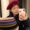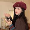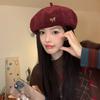 Boina Roja Retro con Lazo Sombrero de Mujer Otoño e Invierno 2024 Circunferencia de Cabeza Grande que Afina el Rostro Versátil Sombrero Octogonal de Tendencia