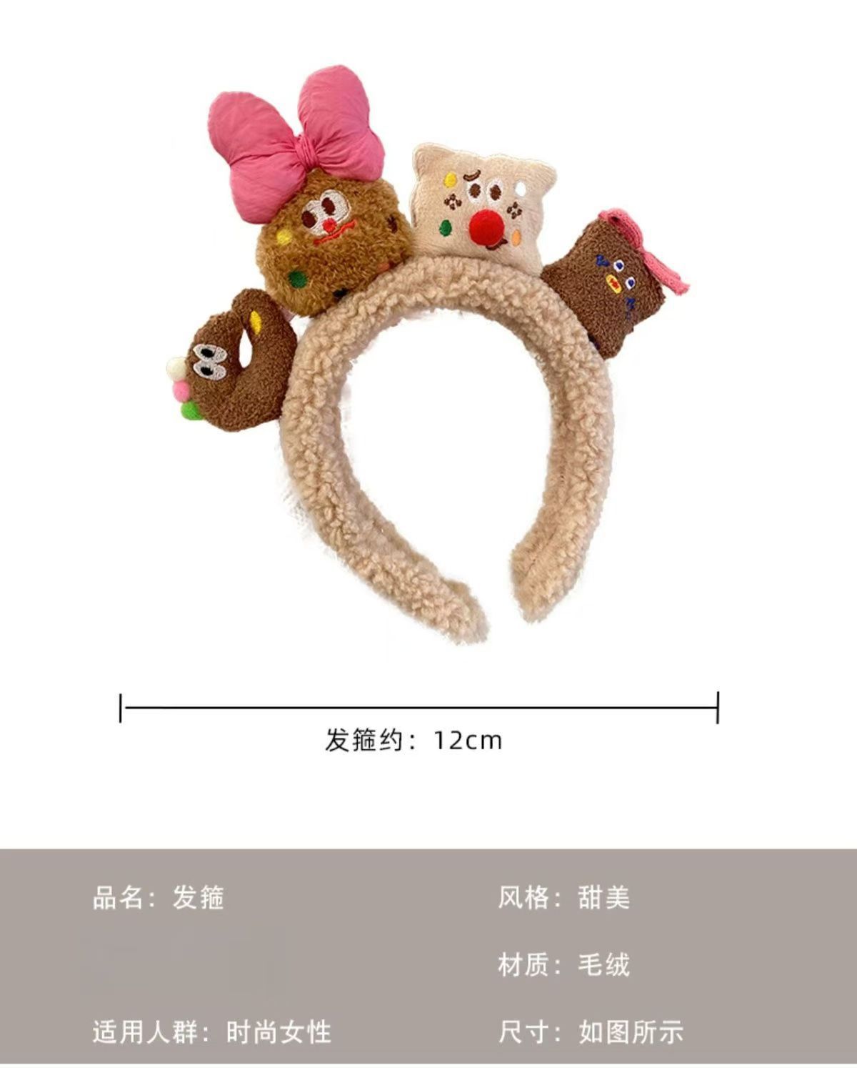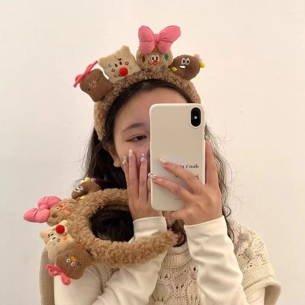 Diadema de Pelo de Galletas Súper Linda y Divertida para Mujer de Dibujos Animados de Felpa Otoño e Invierno Nuevo Estilo Banda para la Cabeza para Lavar la Cara Accesorios para el Cabello Dulces de Moda Estilo Occidental