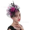 Tocados de plumas de Amazon Explosiones, accesorios para el cabello de novias europeas y americanas, tocados para festivales de carreras de caballos, tocado pequeño de malla retro