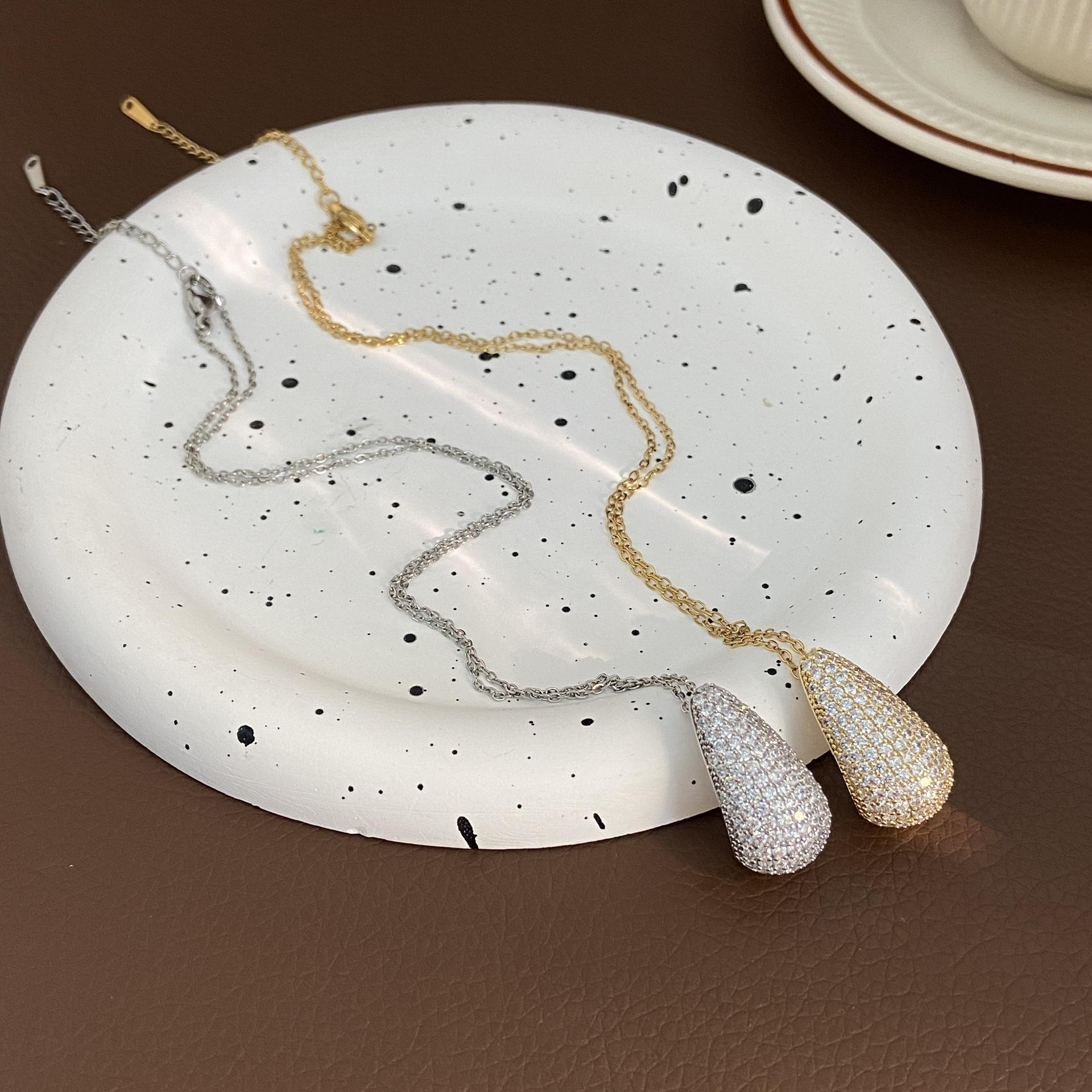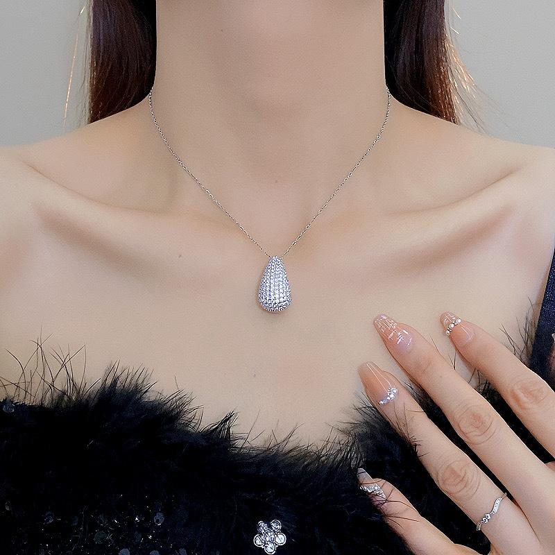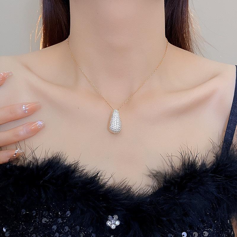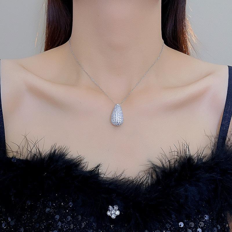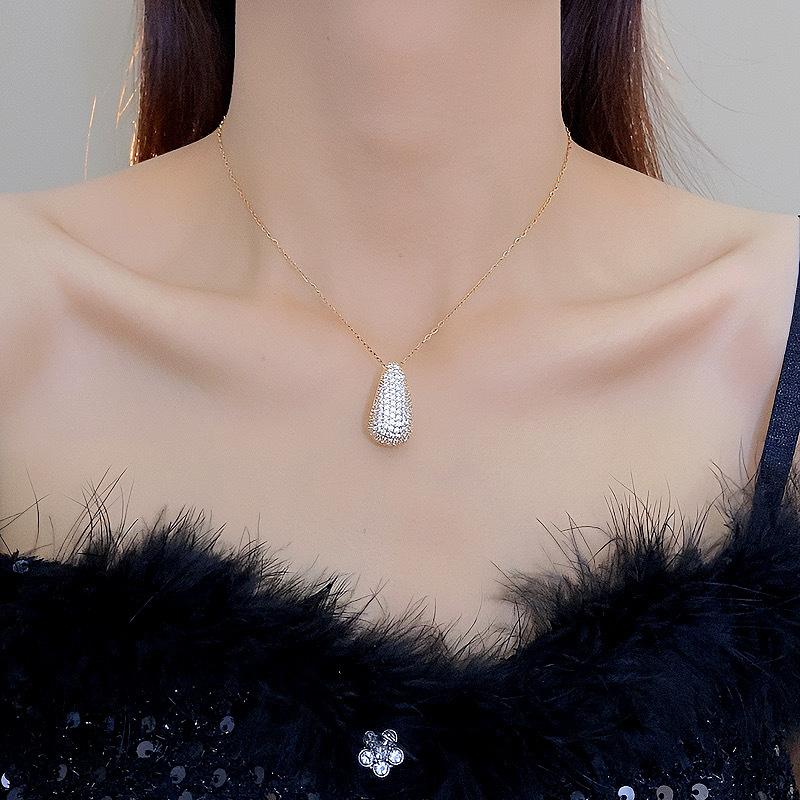 Nueva Moda Europea y Americana Micro-incrustada Zircón Creativo Colgante de Gota de Agua Collar Cadena de Clavícula de Lujo Ligero de Alta Gama Collar Versátil