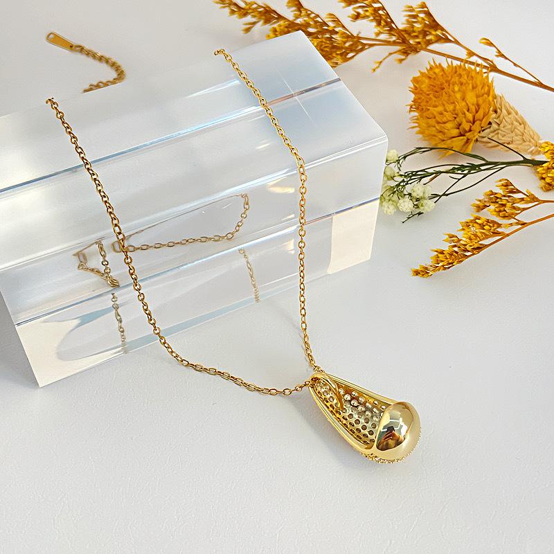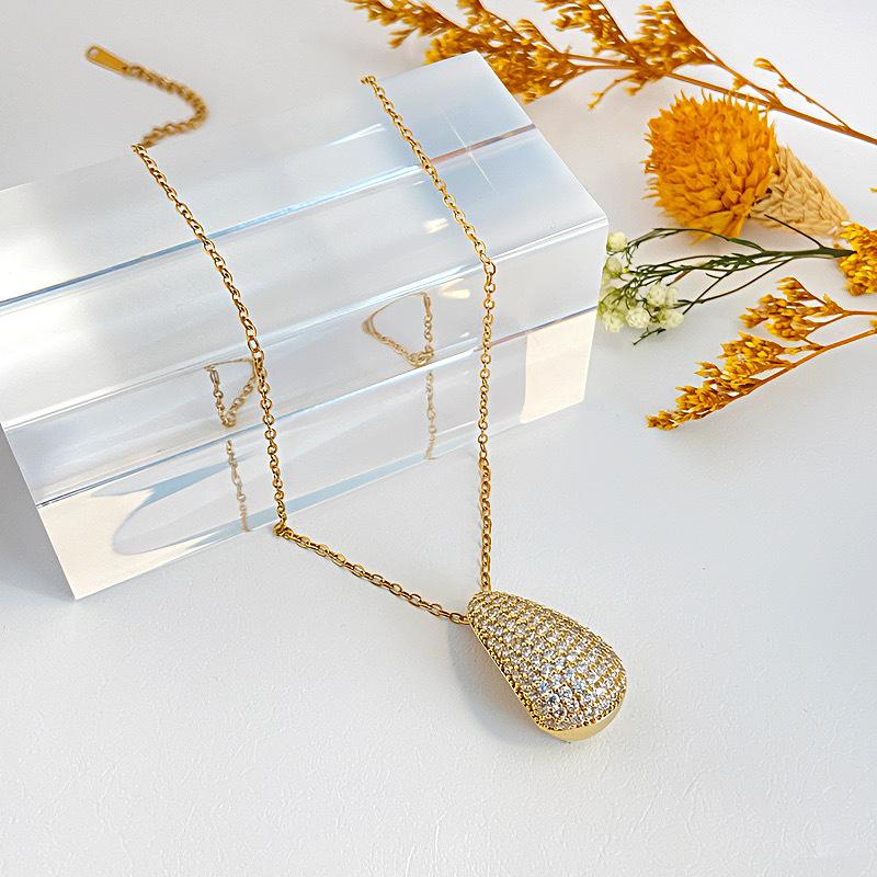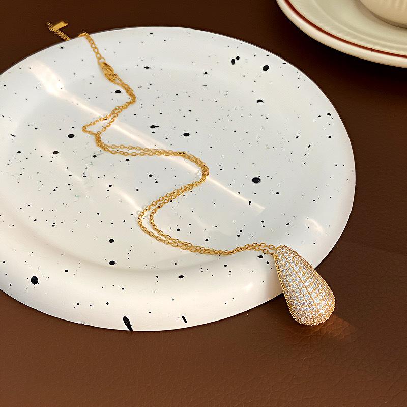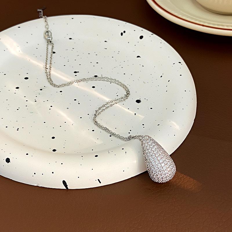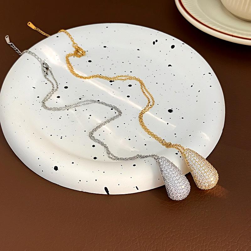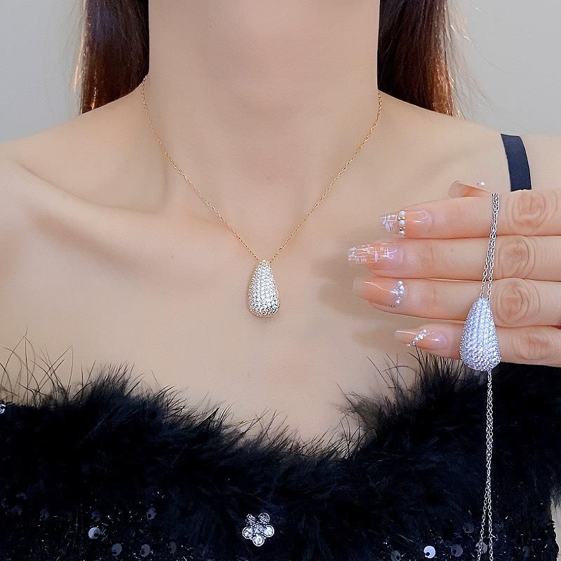 Nueva Moda Europea y Americana Micro-incrustada Zircón Creativo Colgante de Gota de Agua Collar Cadena de Clavícula de Lujo Ligero de Alta Gama Collar Versátil