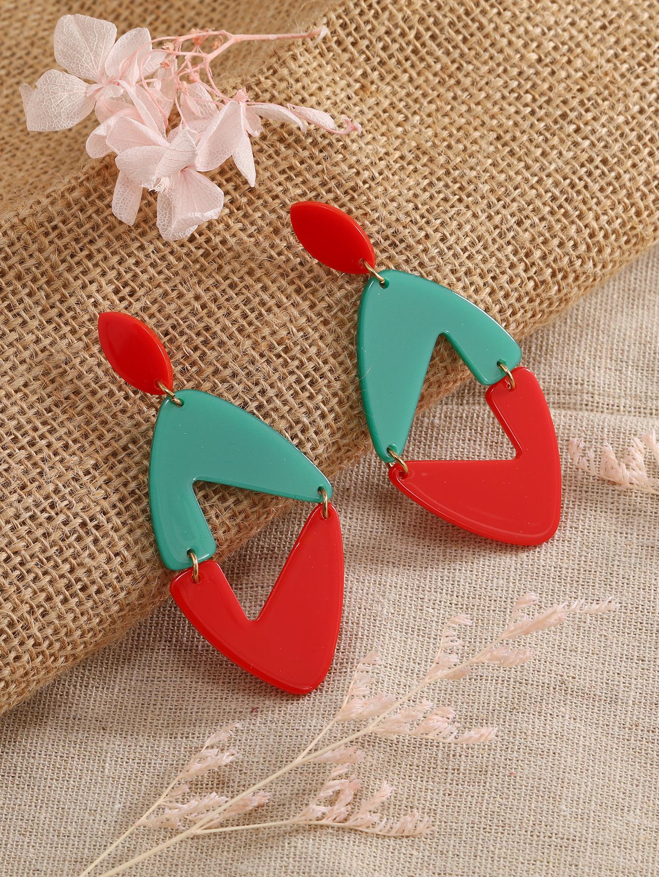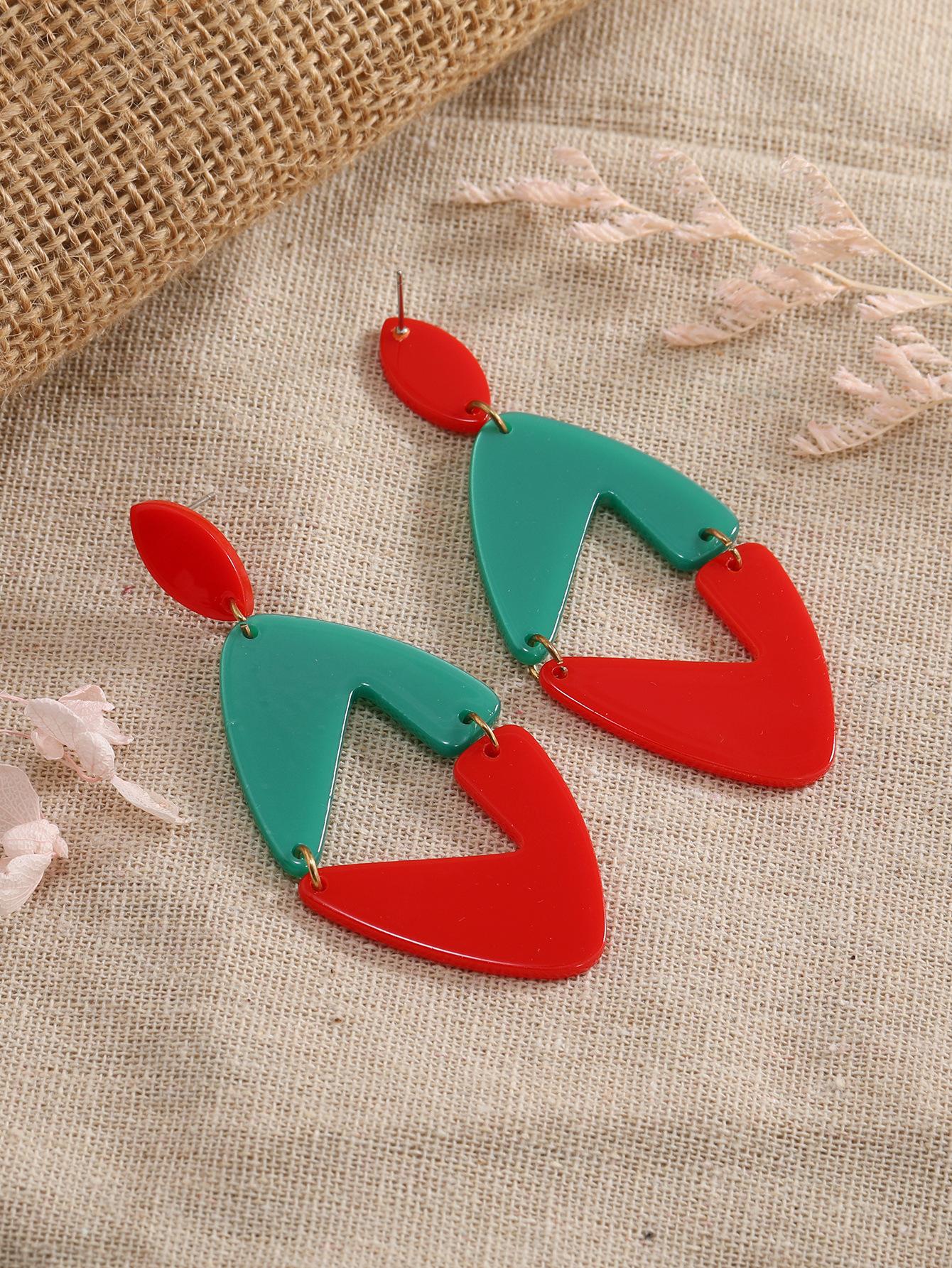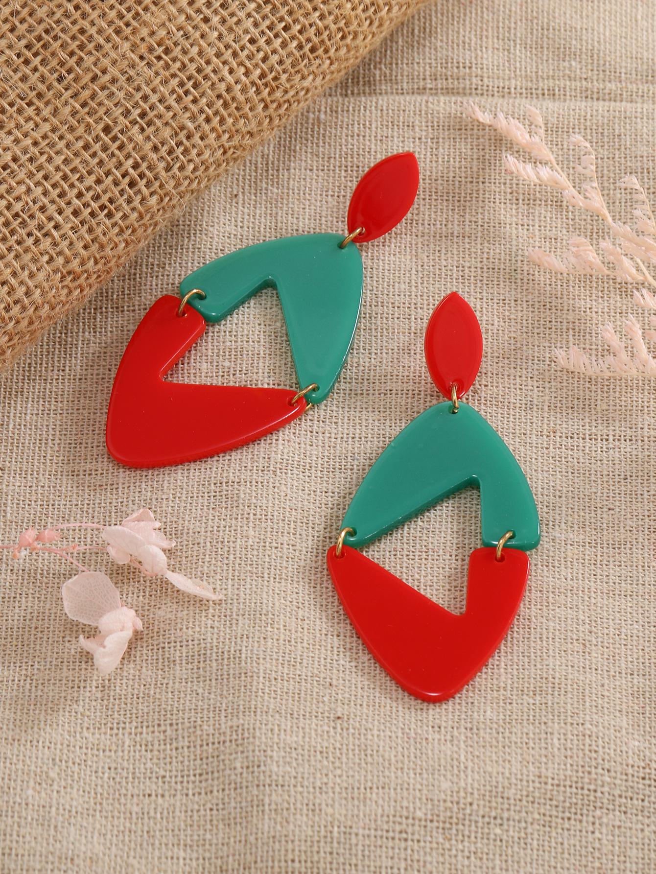 Pendientes nuevos transfronterizos europeos y americanos con diseño de nicho rojo y verde, forma irregular, acrílicos, pendientes de moda para mujeres al por mayor