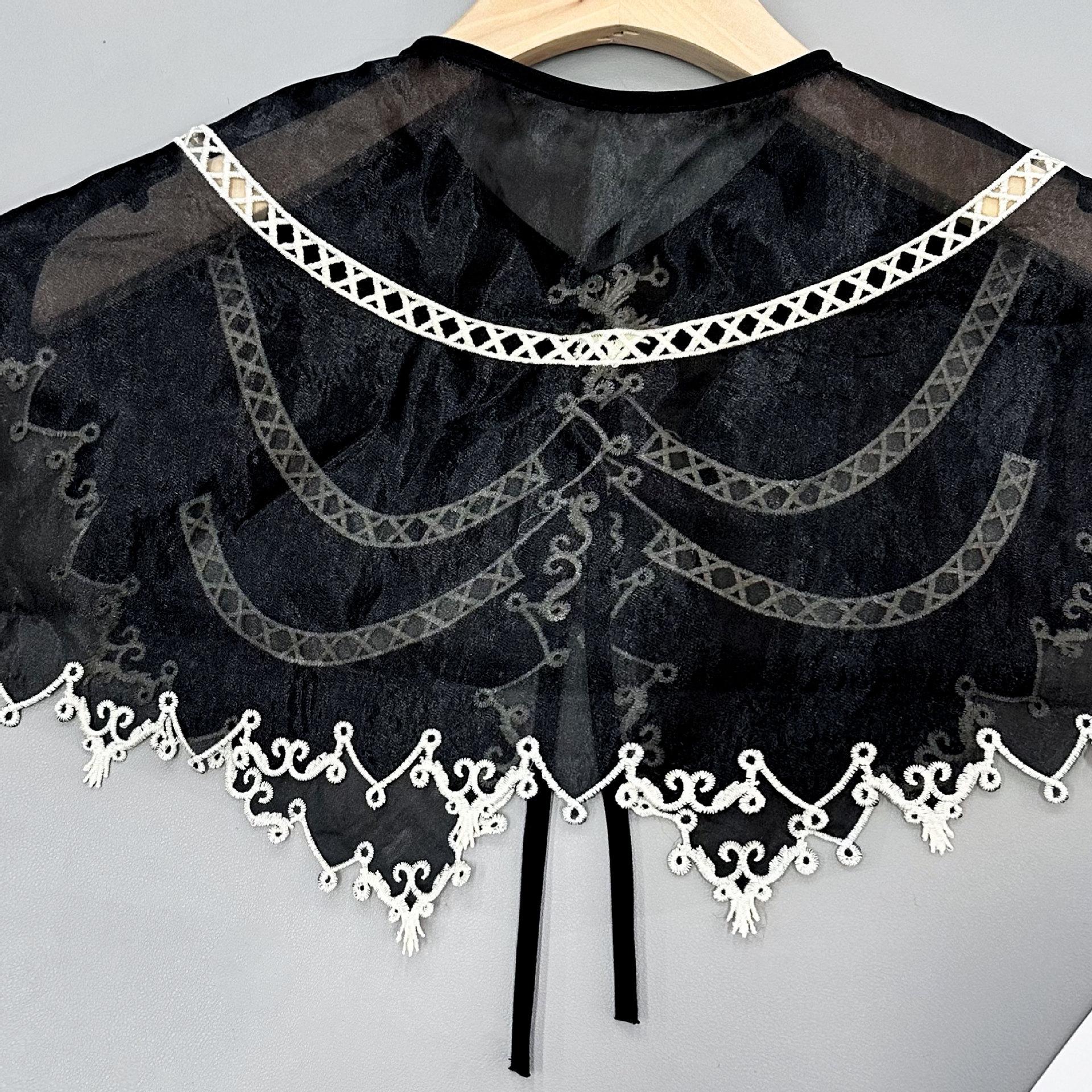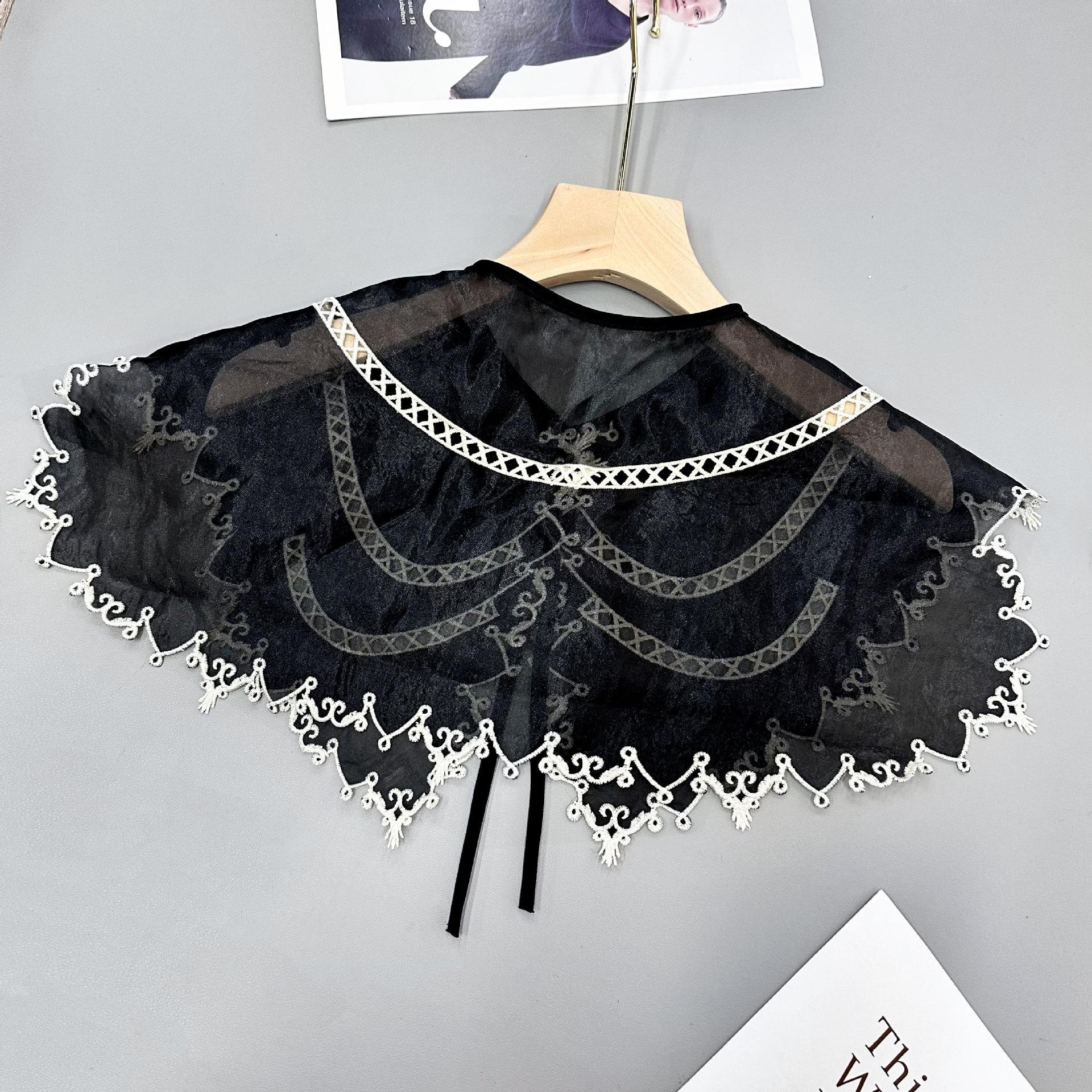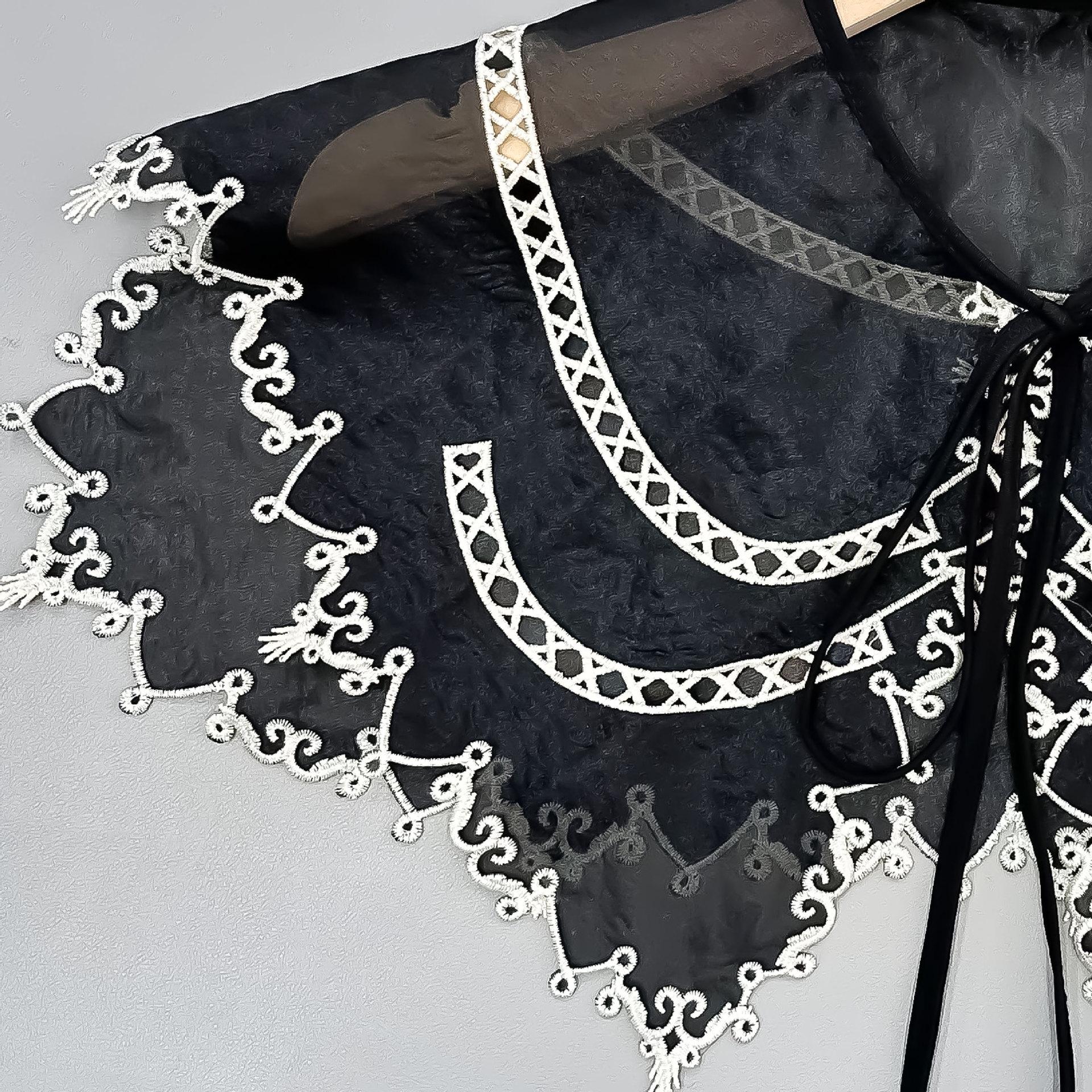 Cuello Falso de Organza Negra con Bordes Blancos para Mujer, Chal Coreano de Protección Solar, Vestido, Camisa, Accesorios Decorativos, Versátil