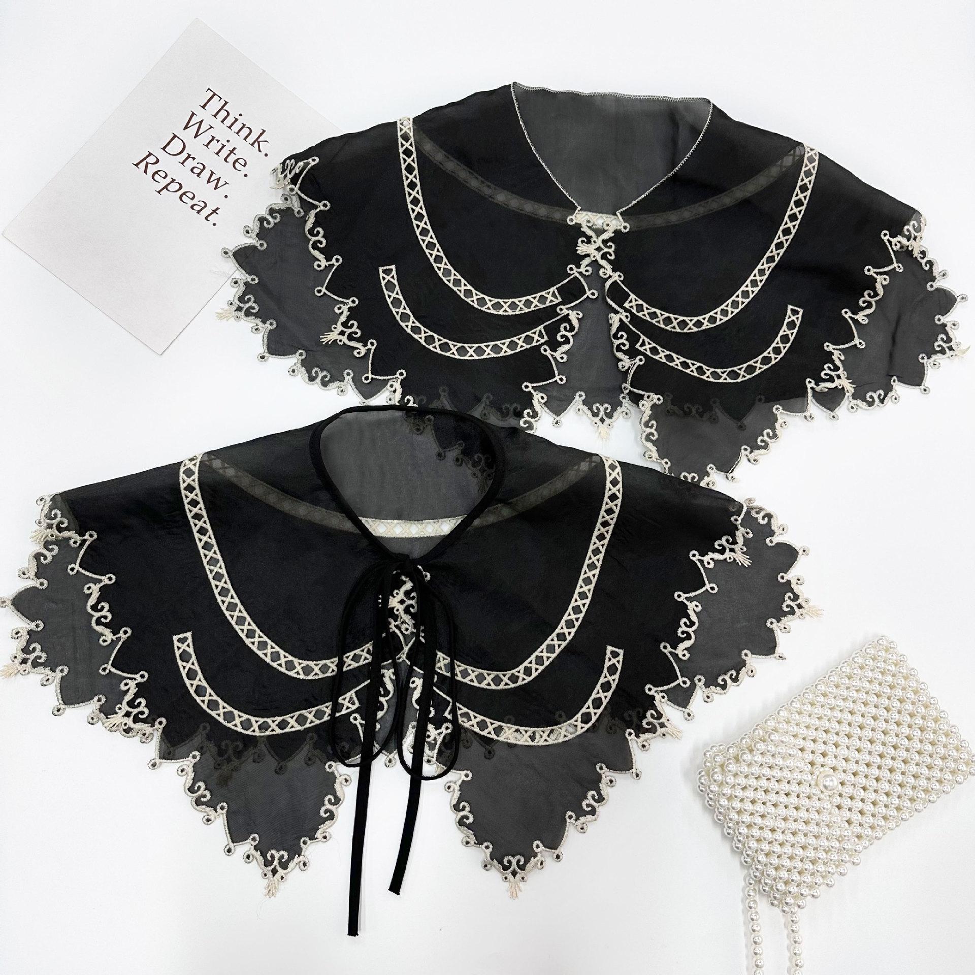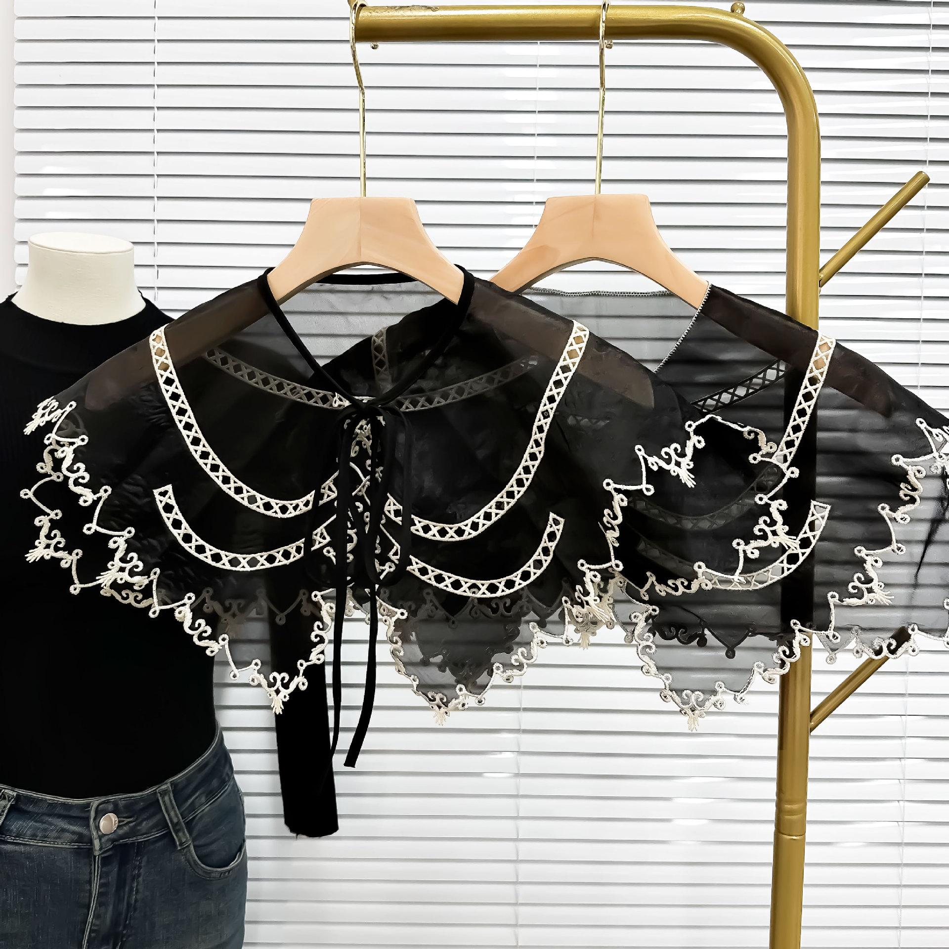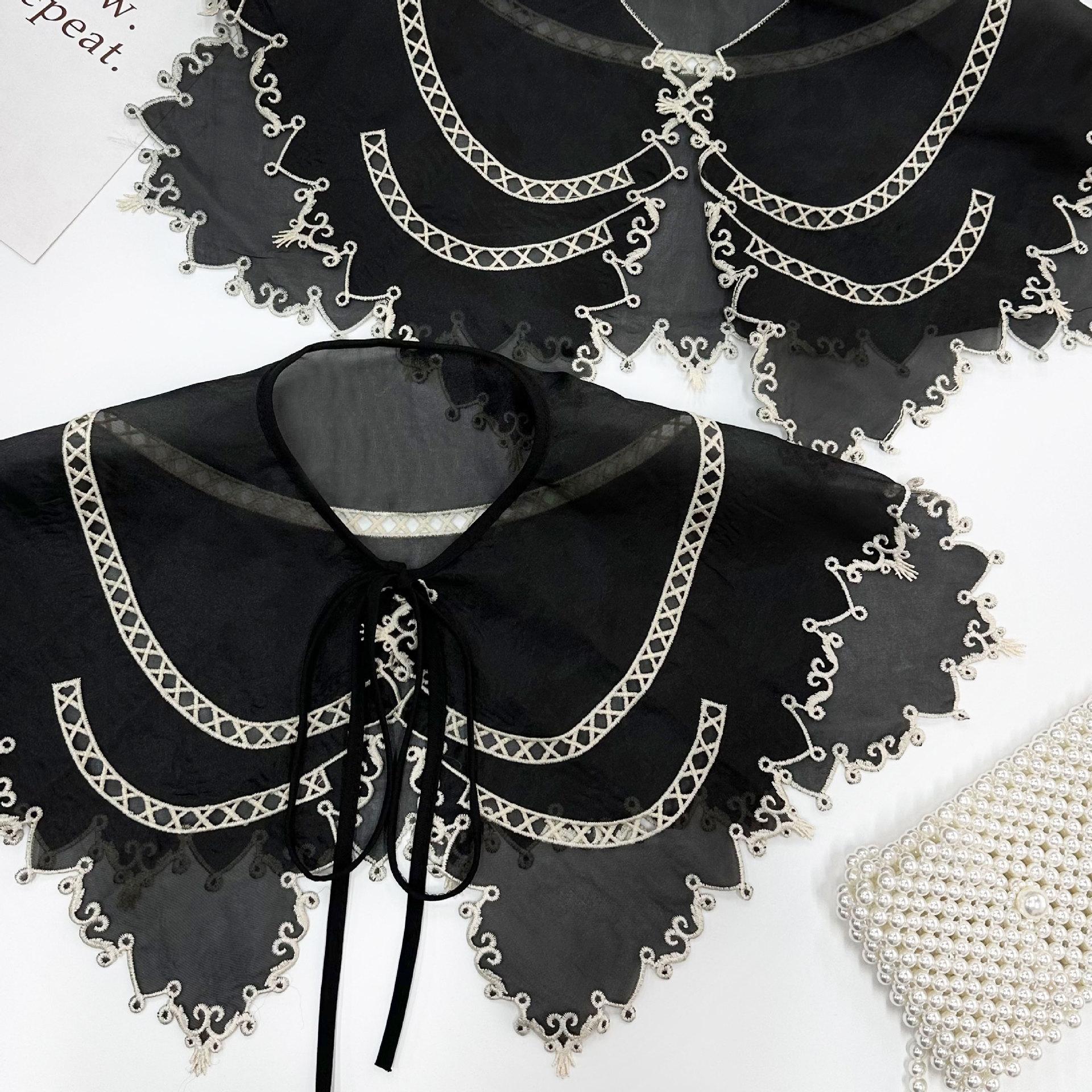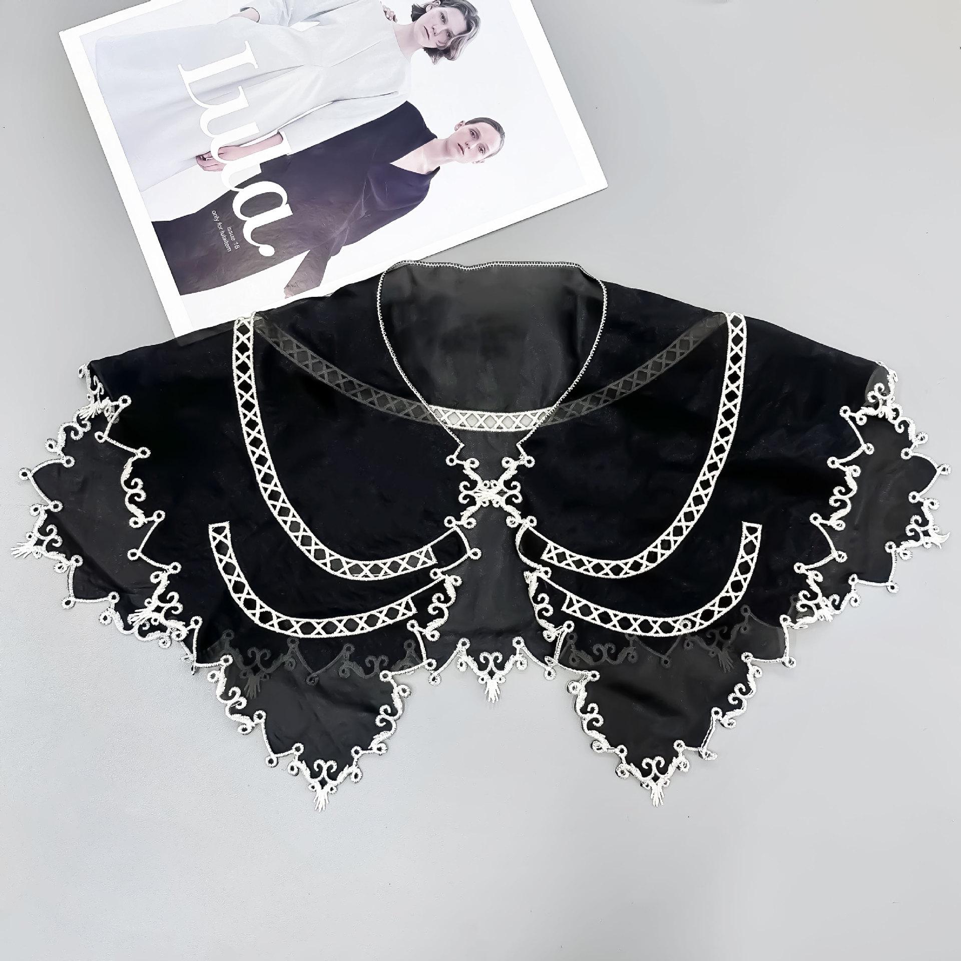 Cuello Falso de Organza Negra con Bordes Blancos para Mujer, Chal Coreano de Protección Solar, Vestido, Camisa, Accesorios Decorativos, Versátil