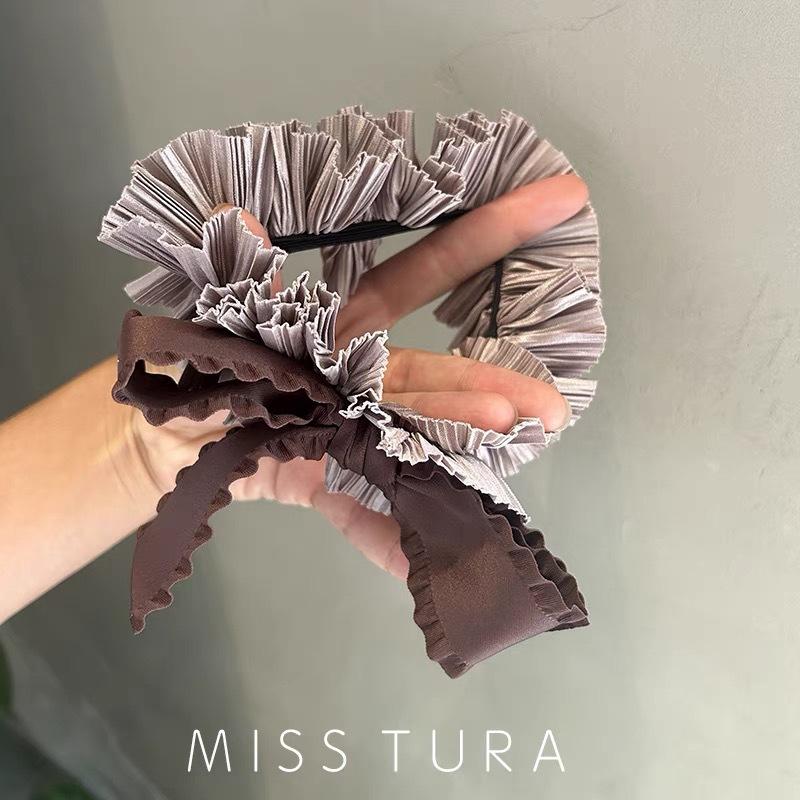 Bloguera surcoreana de moda con lazo plisado, estilo dulce, para el intestino grueso, anilla para el pelo, cuerda para la cabeza, coleta baja, accesorios para el cabello