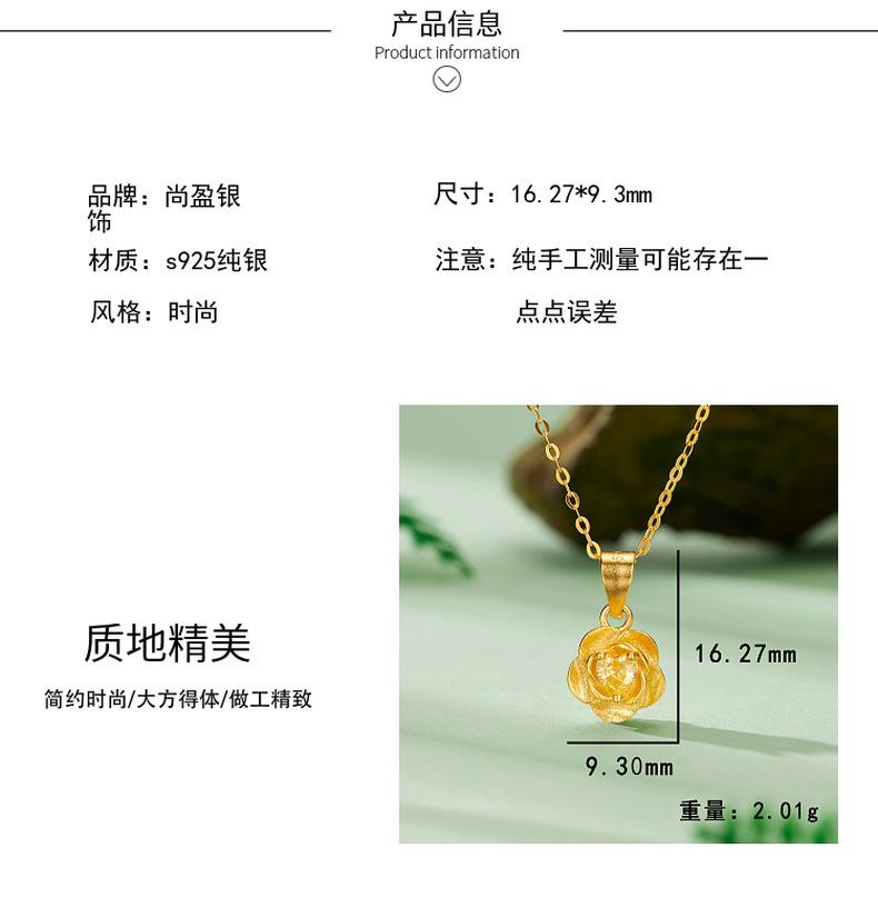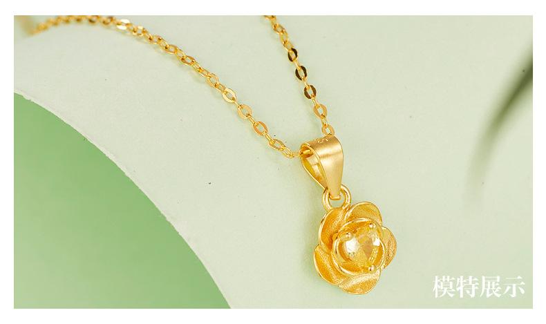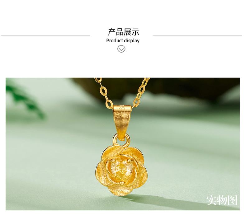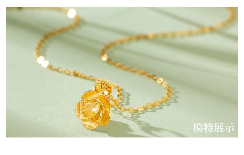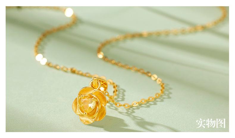 Collar con colgante de rosa de circonita amarilla de amor en plata de ley S925, entrada de nicho, collar de lujo para niñas mayores, cadena de clavícula