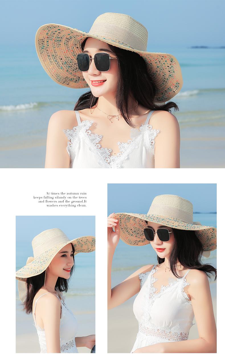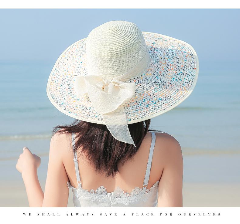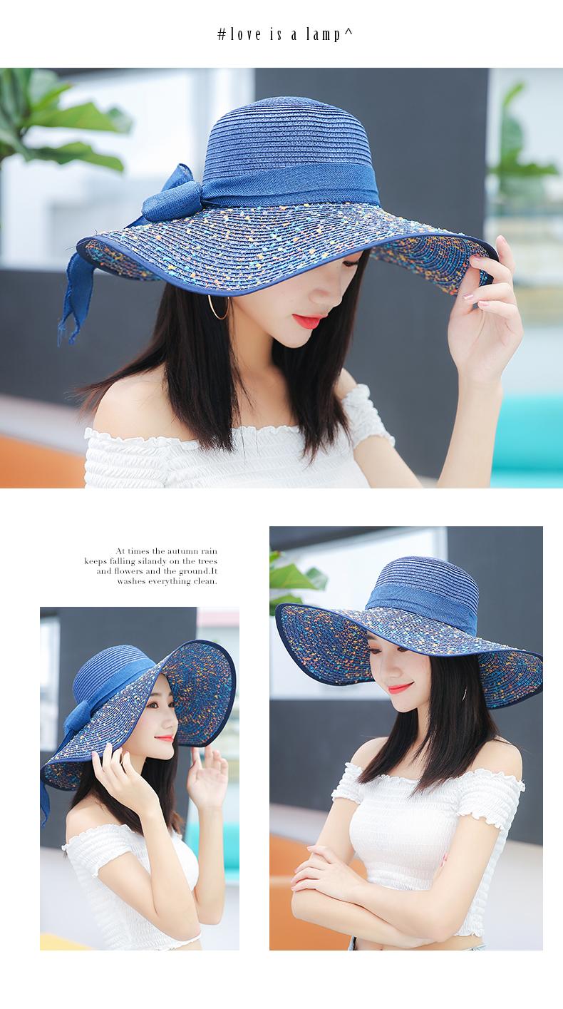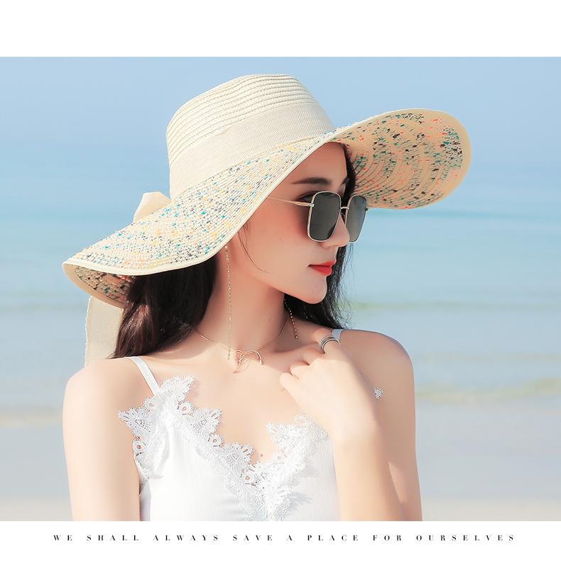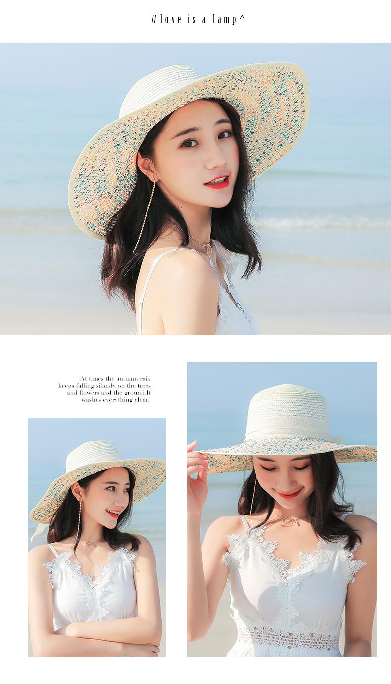 Sombrero de Paja de Playa para Mujer Verano Marítimo Sombrero Protector Solar Estilo Coreano Combinable Viajero Ala Grande Plegable Sombrero para el Sol