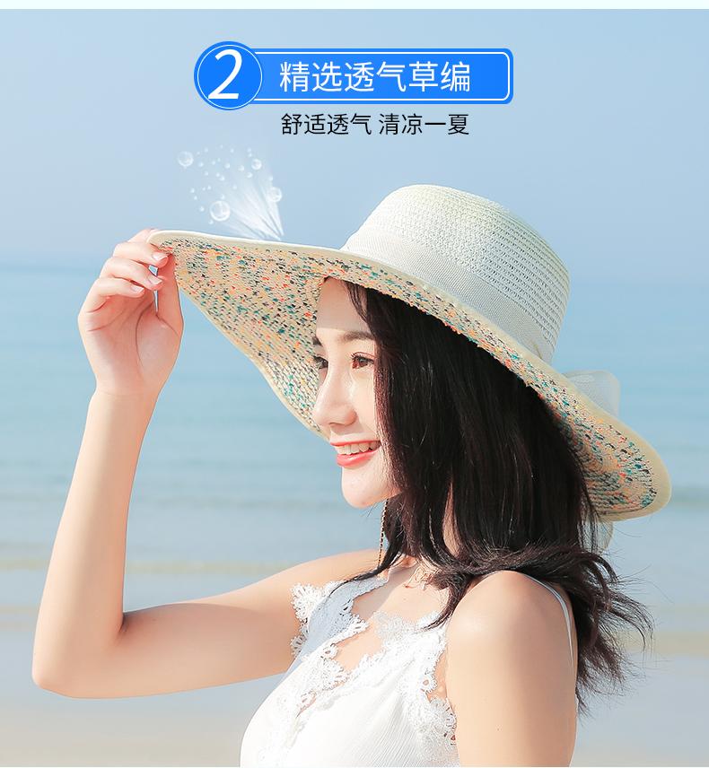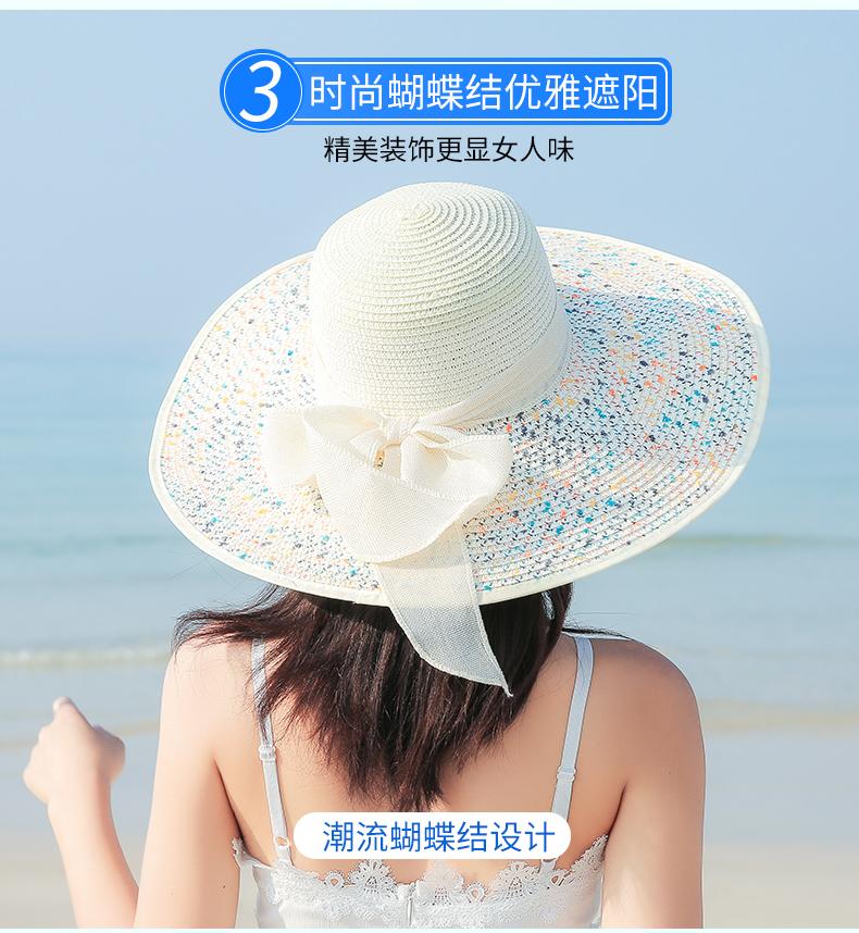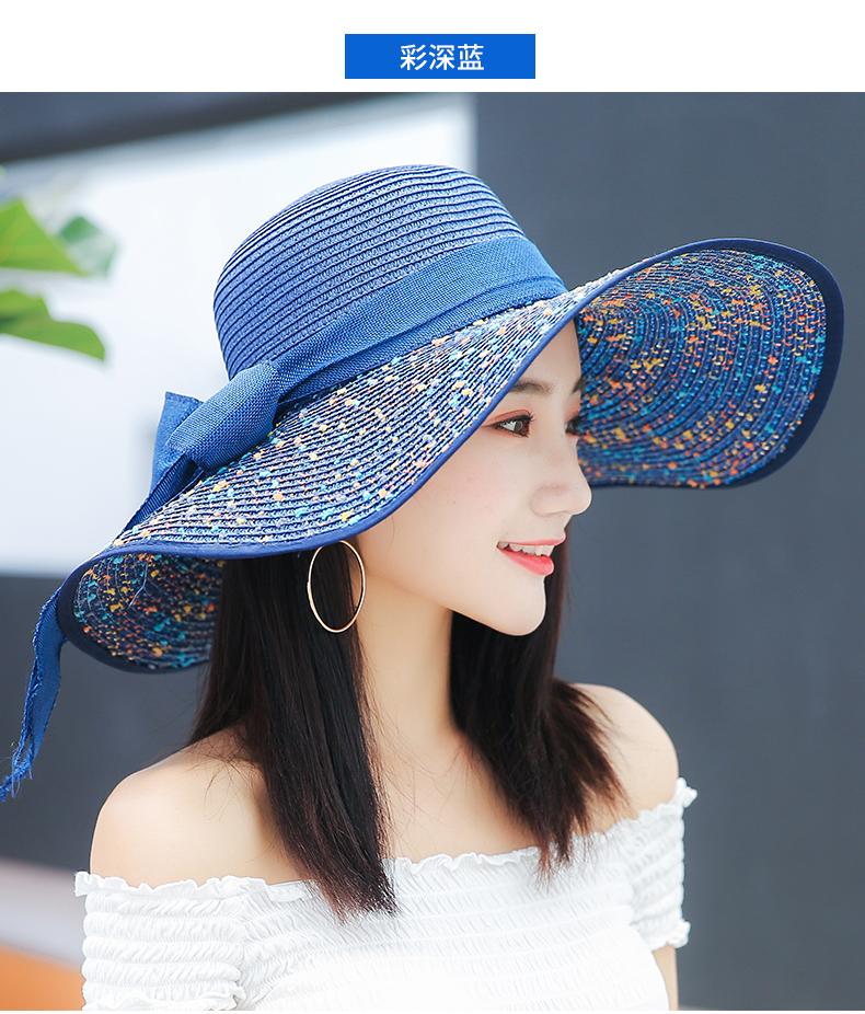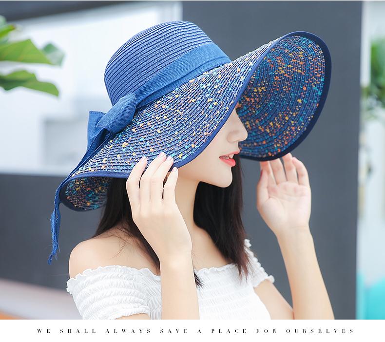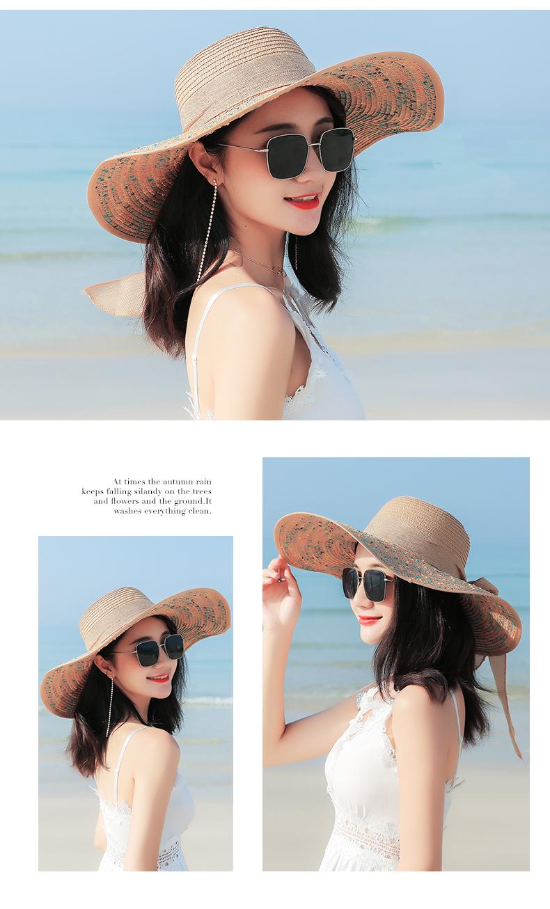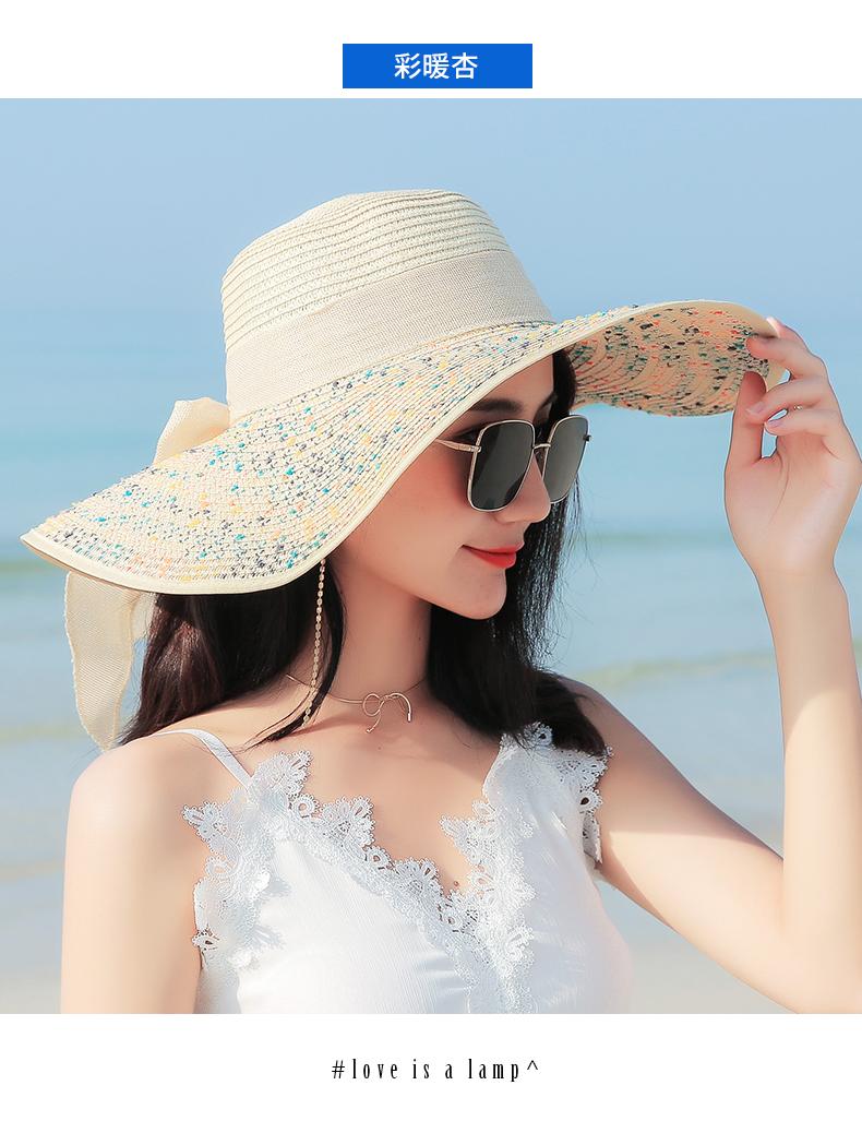 Sombrero de Paja de Playa para Mujer Verano Marítimo Sombrero Protector Solar Estilo Coreano Combinable Viajero Ala Grande Plegable Sombrero para el Sol