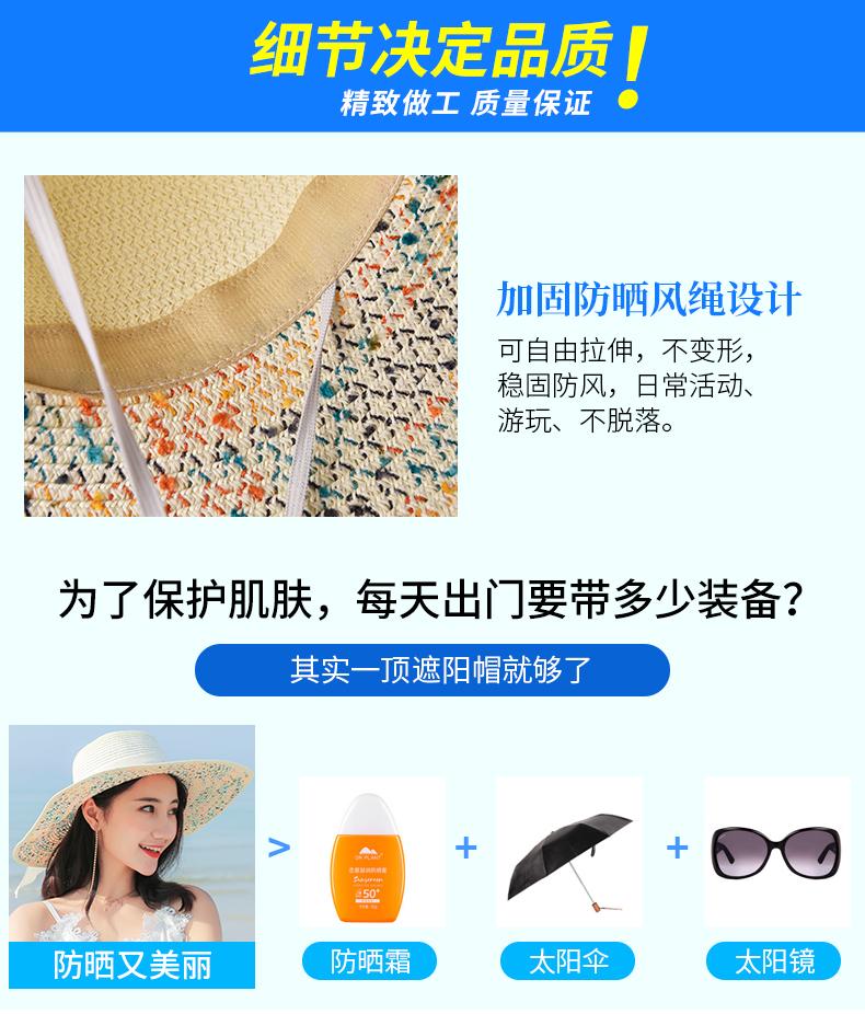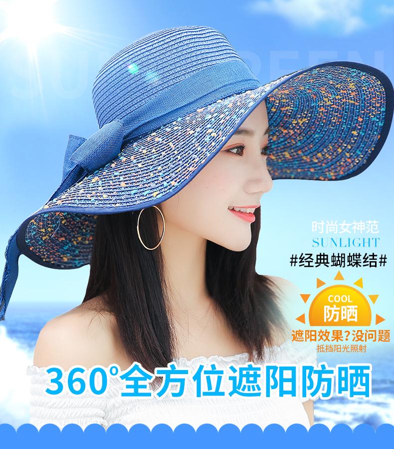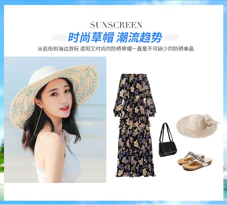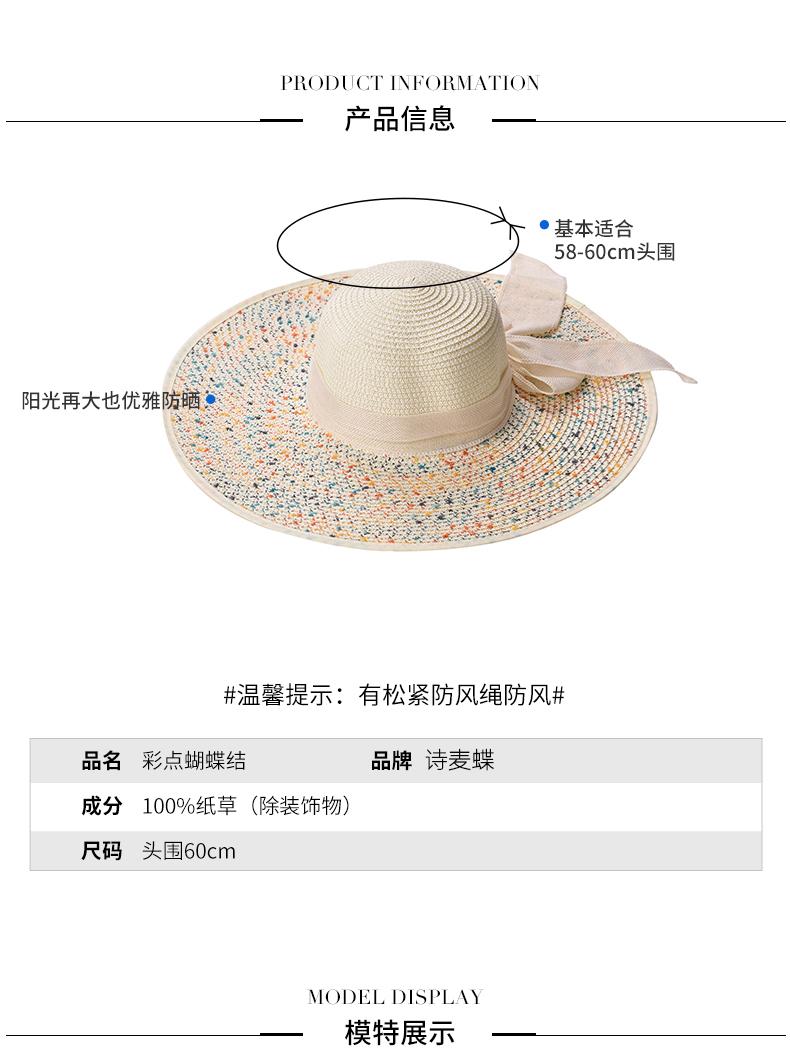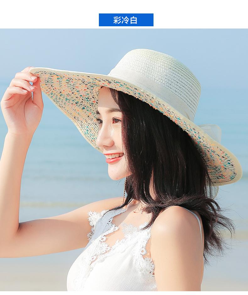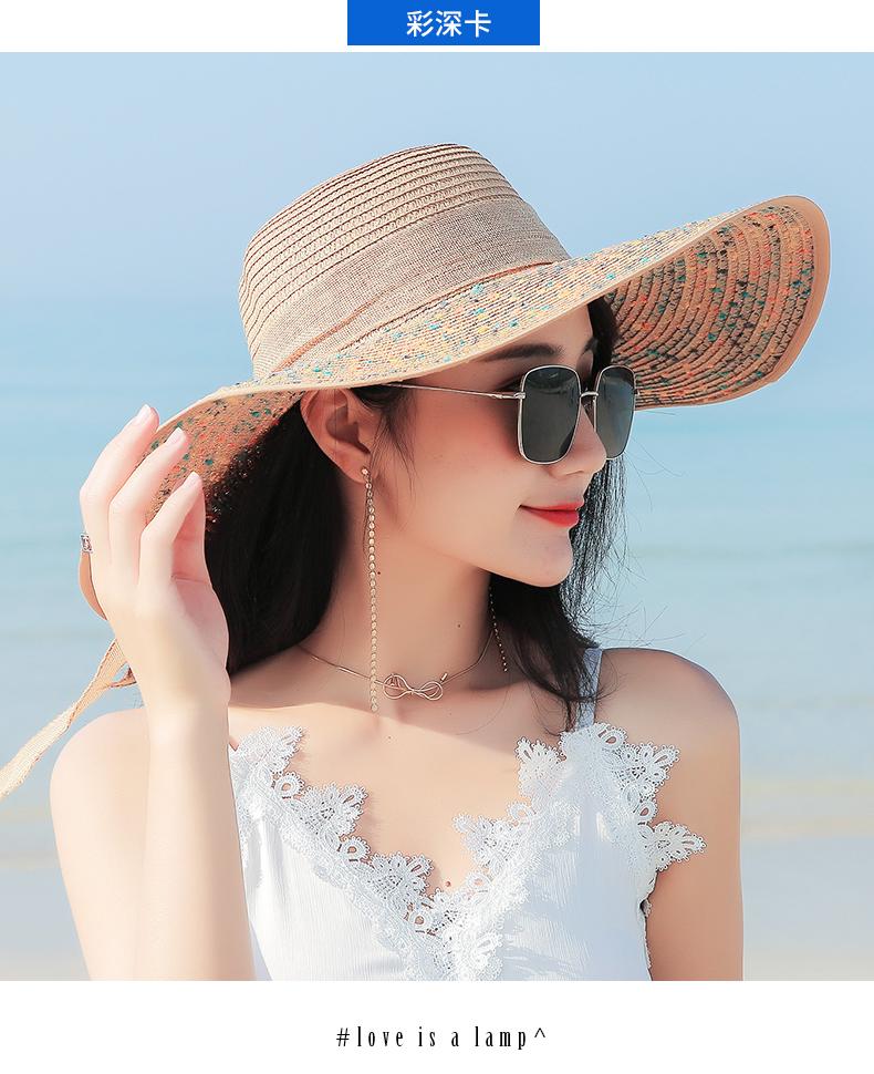 Sombrero de Paja de Playa para Mujer Verano Marítimo Sombrero Protector Solar Estilo Coreano Combinable Viajero Ala Grande Plegable Sombrero para el Sol