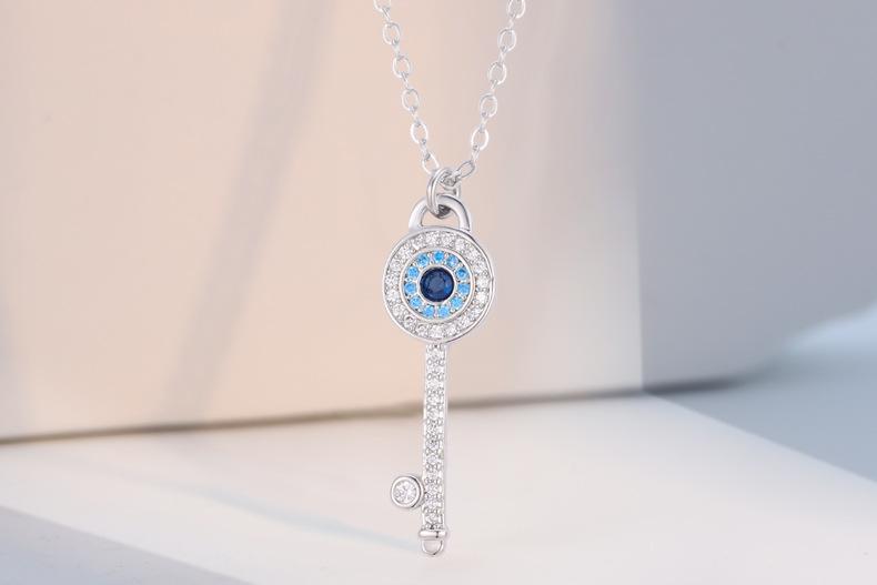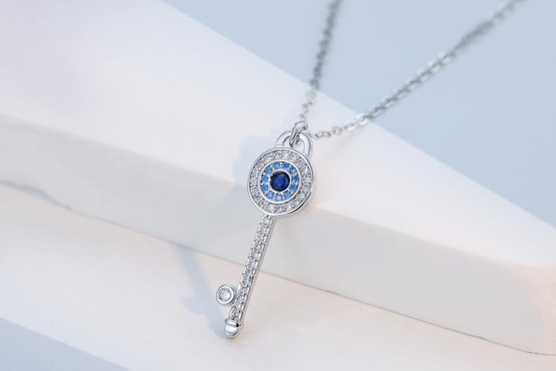 Moda simple collar de llave ojo de diablo para mujer nueva tendencia diamante completo circón cadena clavícula colgante collar al por mayor