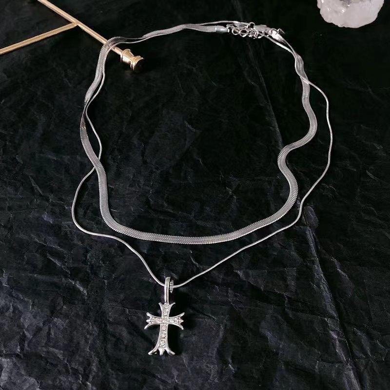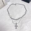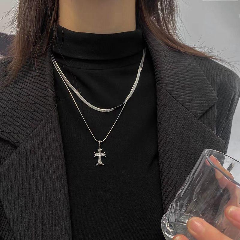 Colección de collares con cruces europeas y americanas para hombres y mujeres, diseño de nicho, cadena de lana de celebridades de Internet, cadena de clavícula de acero de titanio sin color.