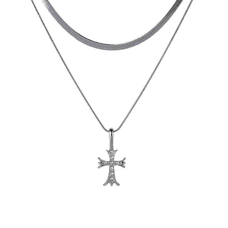 Titanium steel double layer cross necklace, Titanium steel single layer cross necklace