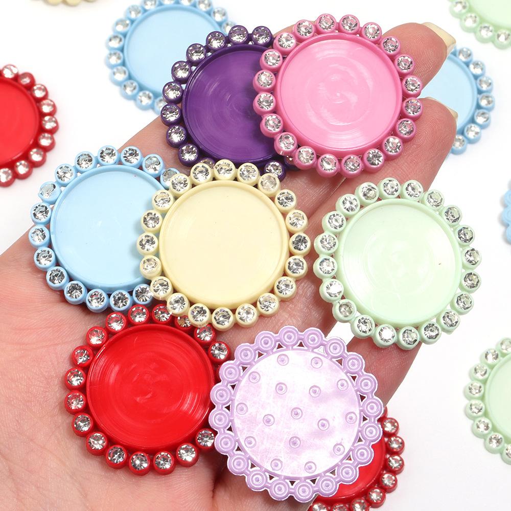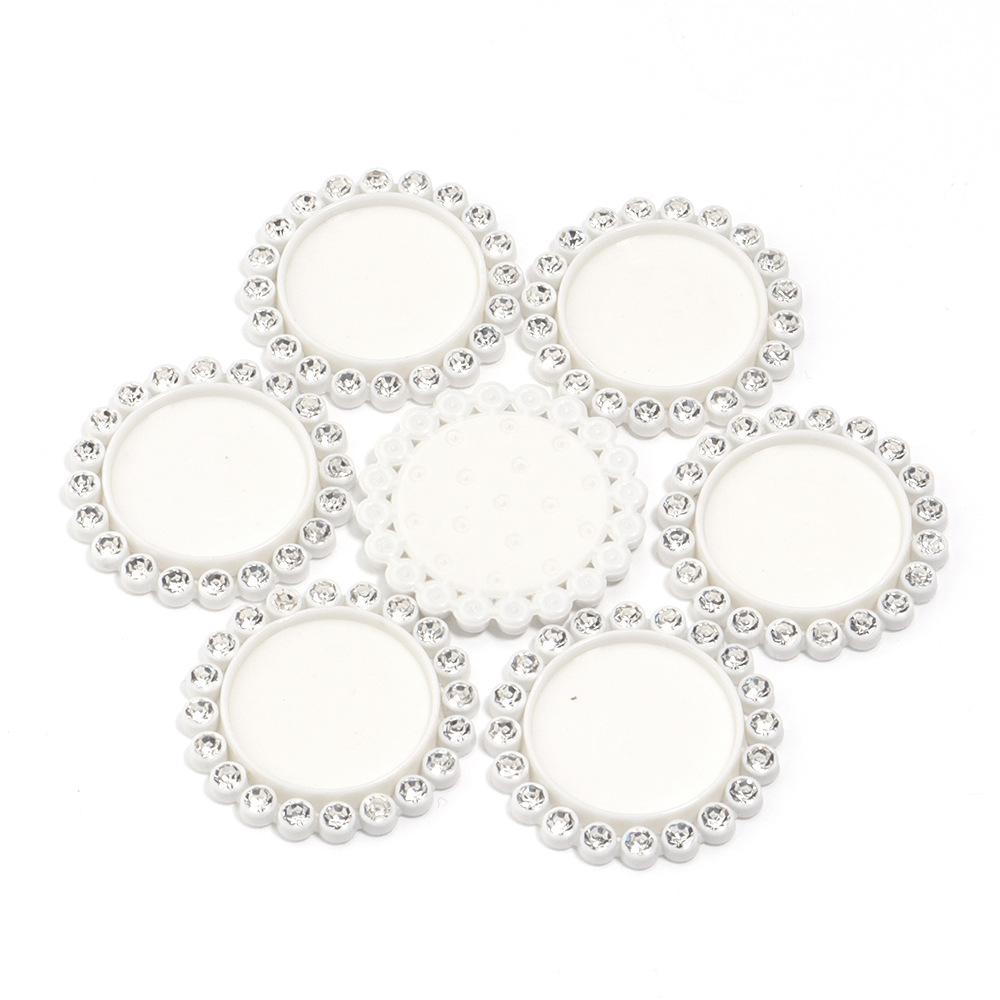 Bandeja de resina con incrustaciones de diamantes de imitación blancos, base redonda, para manualidades, con gemas de colores, accesorios de joyería, 5 unidades