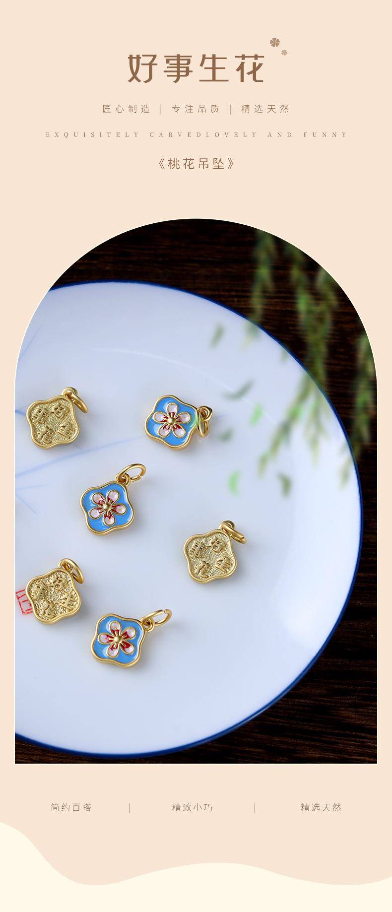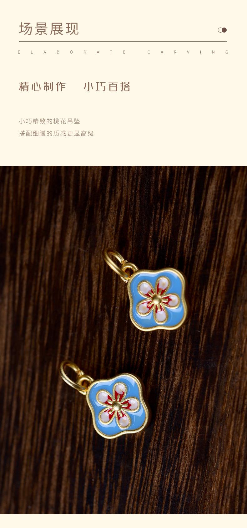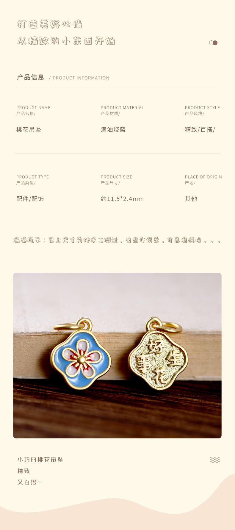 Cosa buena cloisonné de flor cruda colgante de flor de durazno goteando aceite quemando accesorios azules que significan cosa buena continua accesorios de pulsera casera