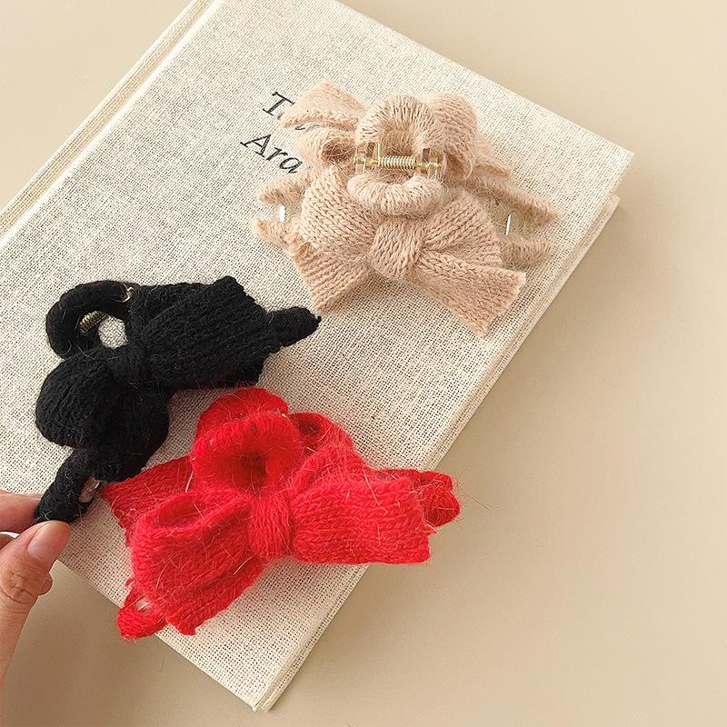 Otoño e Invierno Lana Tejida Lazo Pinza de Agarre Sentido Avanzado Parte Posterior de la Cabeza Pinza de Tiburón Temperamento Pinza para el Cabello Horquilla Accesorios para el Cabello