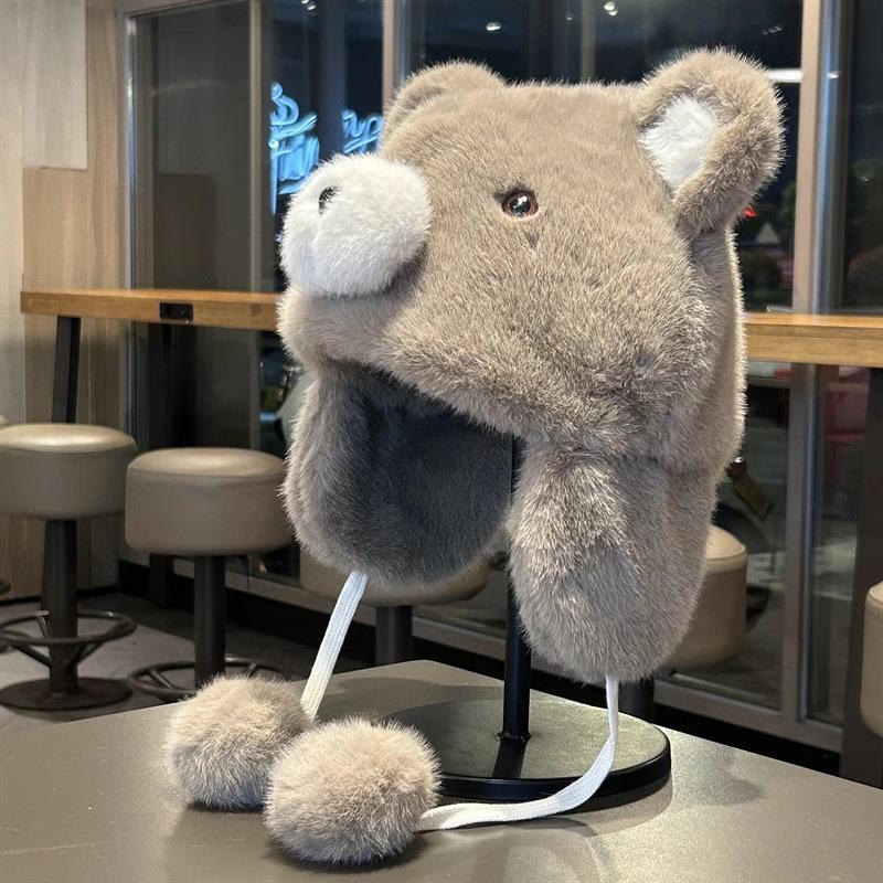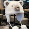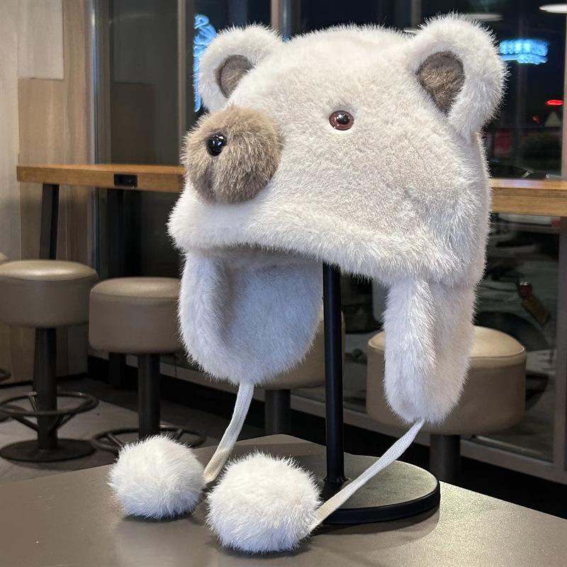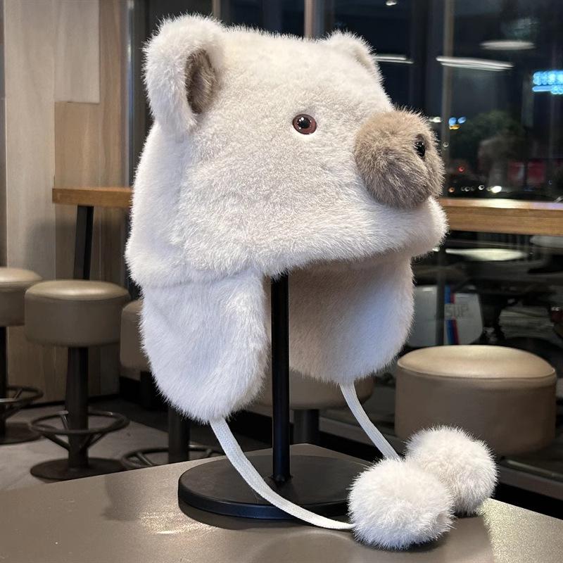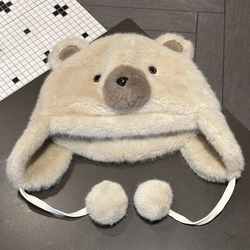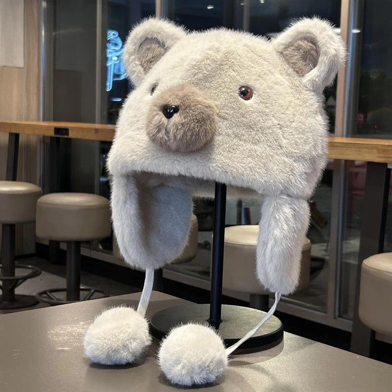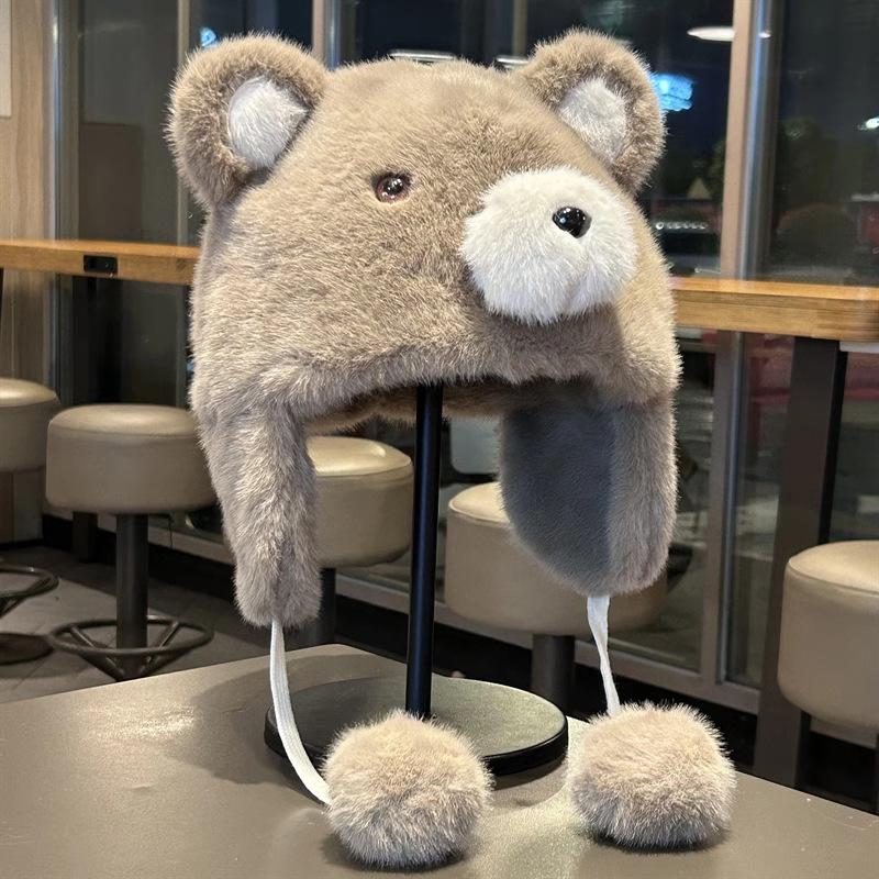 Gorro de Felpa de Oso para Mujer, Estilo Japonés, Lindo y Versátil, Gorro Protector de Orejas, Invierno para Exteriores, Grueso, a Prueba de Frío y Viento, Gorro Lei Feng para Hombre