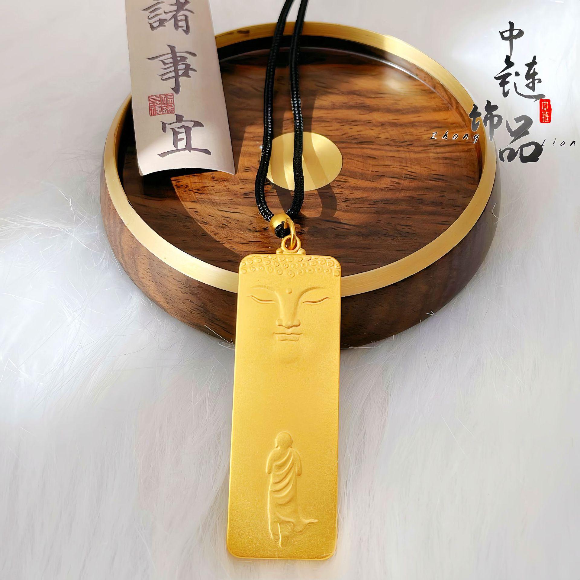 Colgante de Buda de corazón a corazón de oro arena de Vietnam del mismo estilo para hombre, de cobre antiguo chapado en oro de alta conservación del color, etiqueta de Buda de la iluminación zen