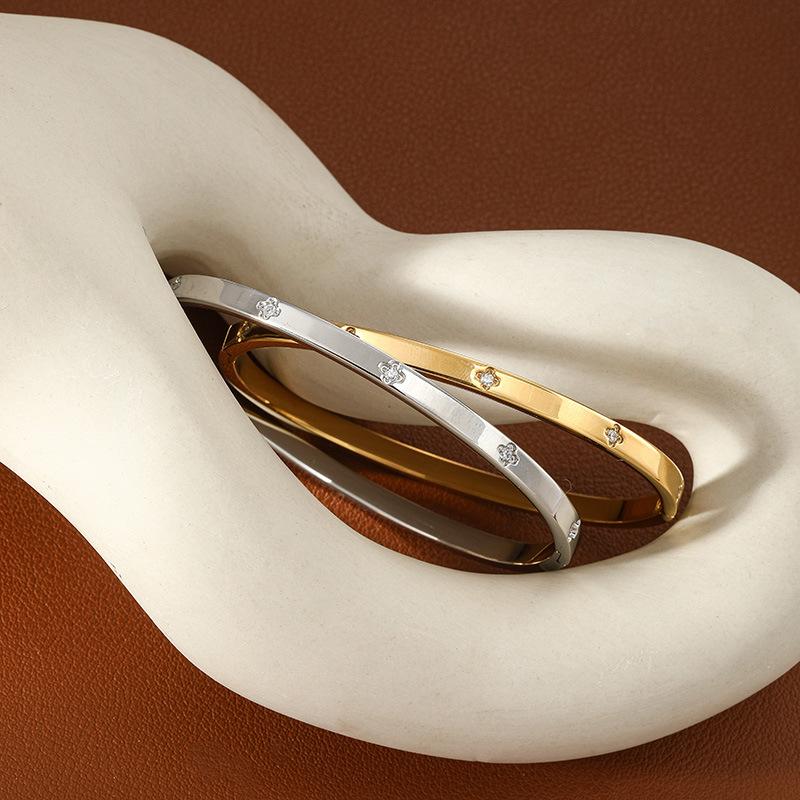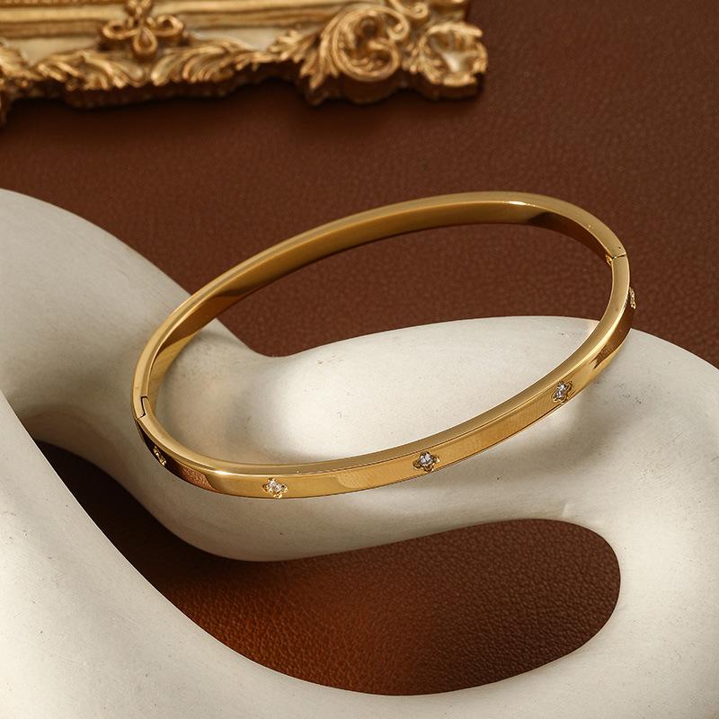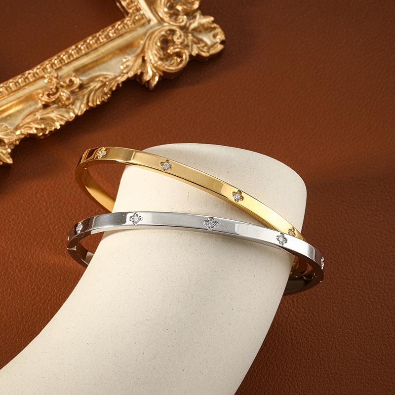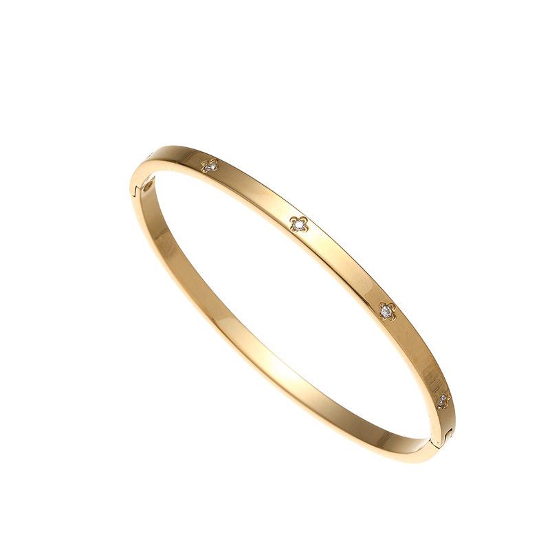 Avanzada sencilla INS incrustada de diamantes acero de titanio chapado en oro real hebilla no se desvanece no alérgica pulsera joyería comodín al por mayor