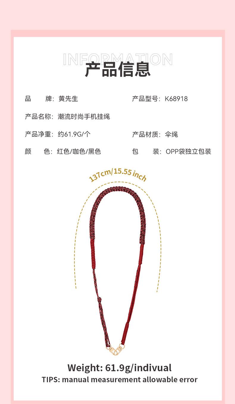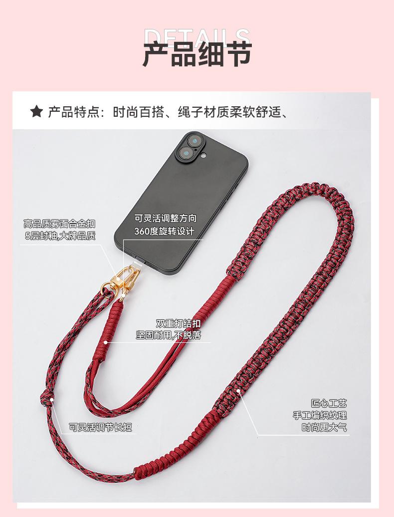 Cordón trenzado de moda para montañismo al aire libre para teléfono móvil que se puede llevar fácilmente alrededor del cuello y cuerda de seguridad multifuncional antipérdida