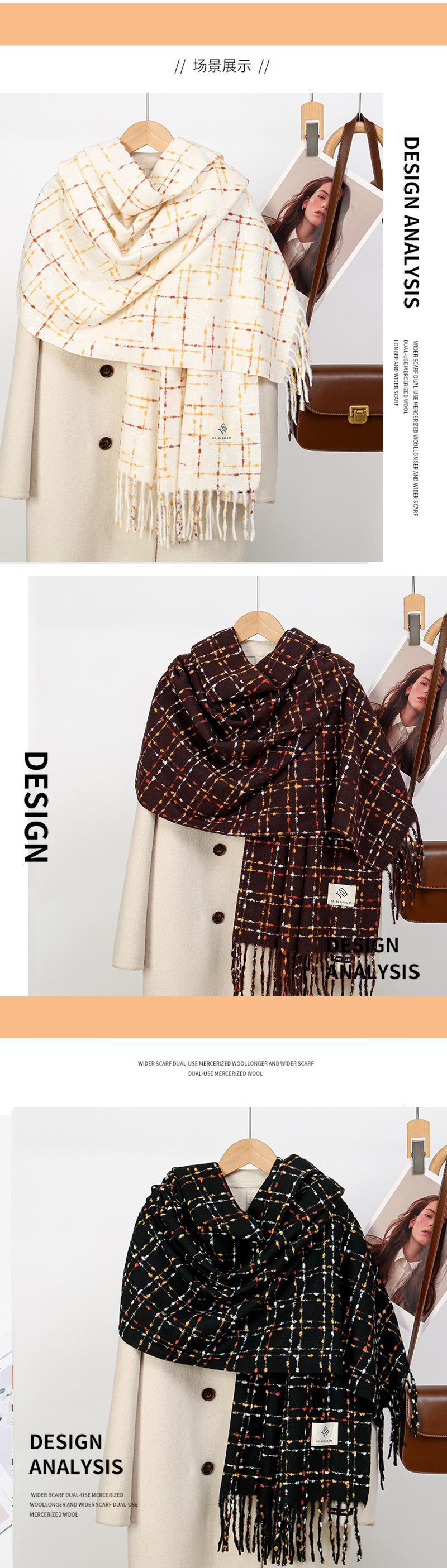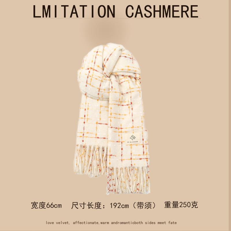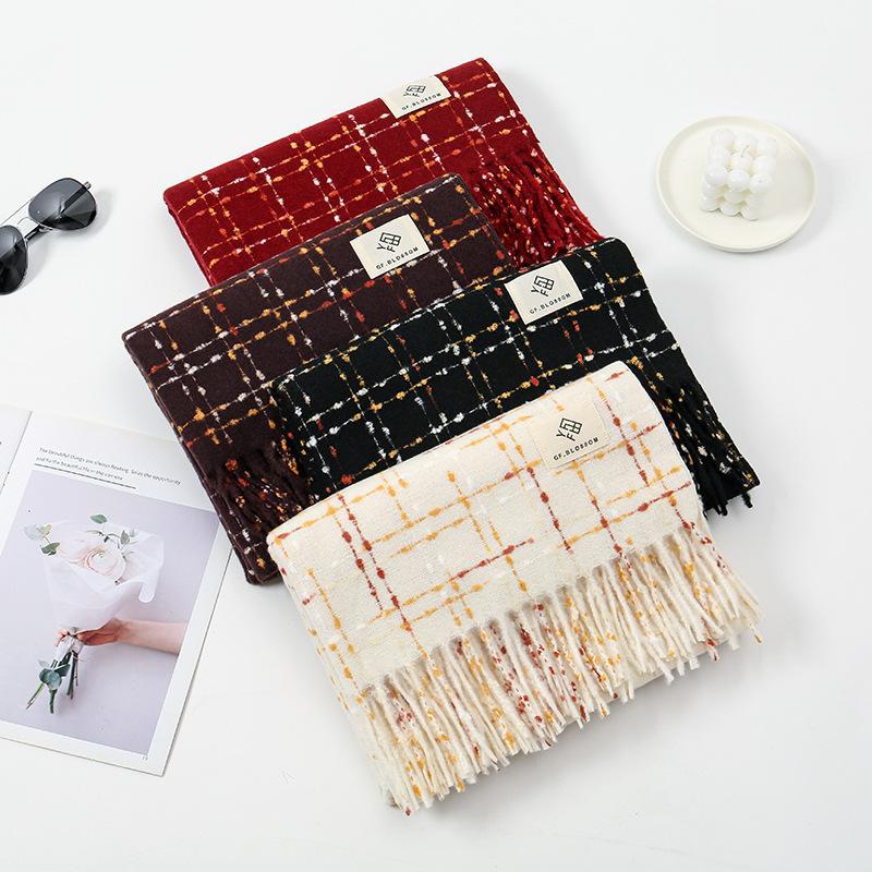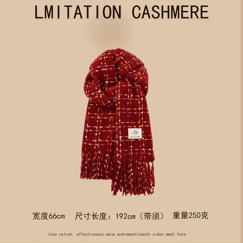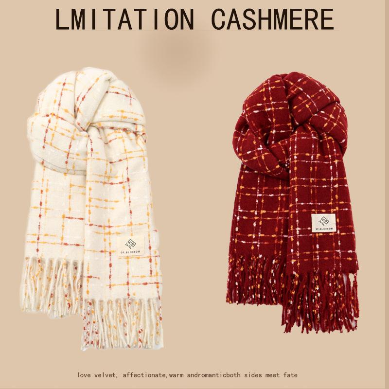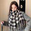Bufanda de cachemira para mujer, de invierno, de alta gama, cálida, retro, a cuadros, para estudiantes, larga, resistente al frío