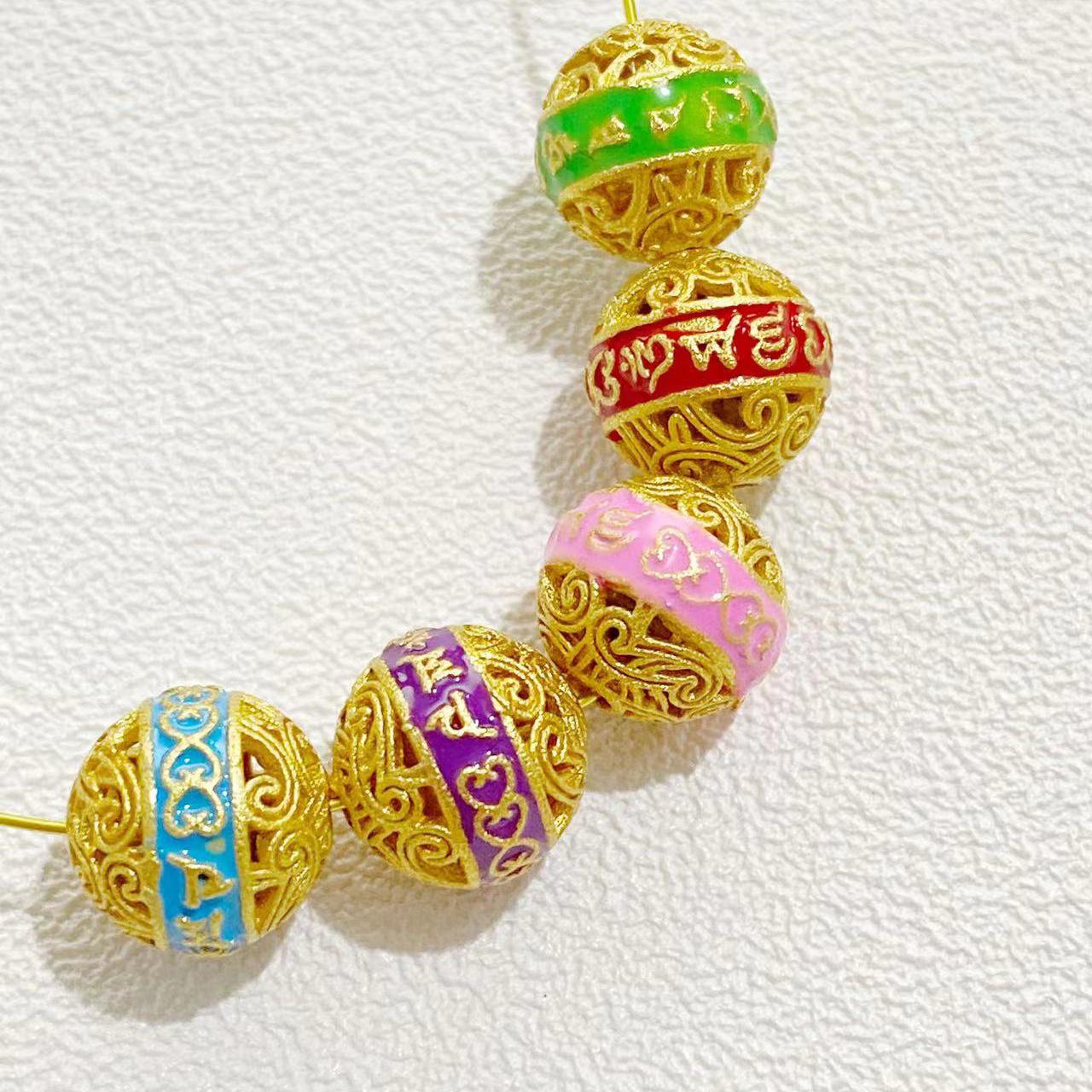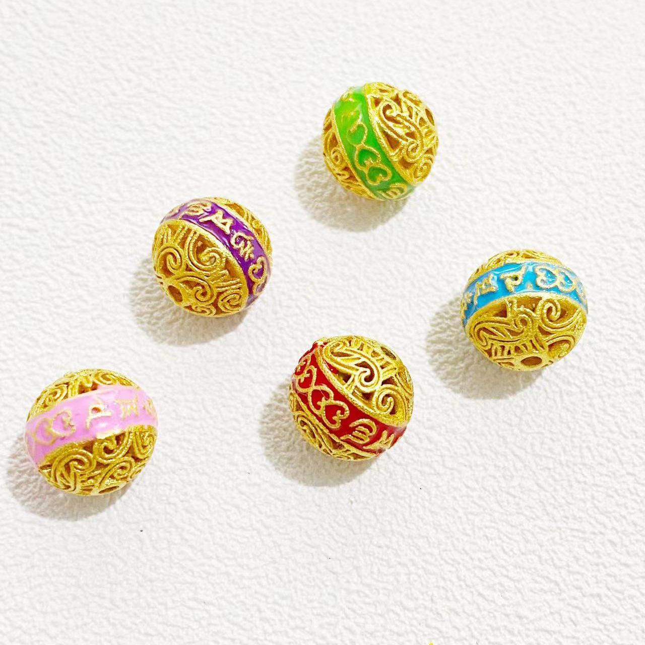 Pulsera de cuentas de mantra de seis palabras de cloisonné hueco Xiangyun de oro antiguo que conserva el color, esmalte floral multicolor, pulsera DIY