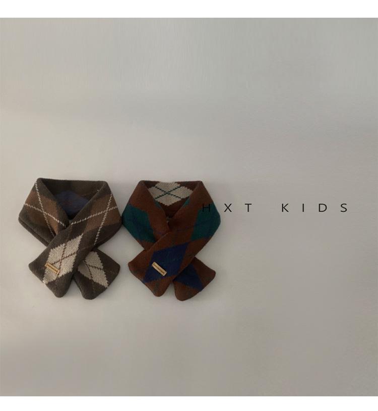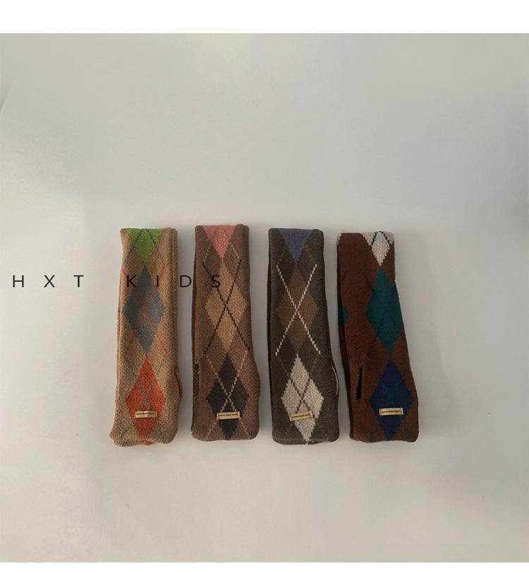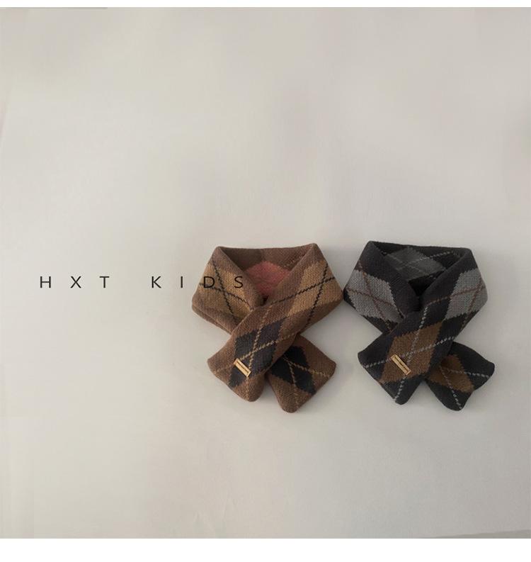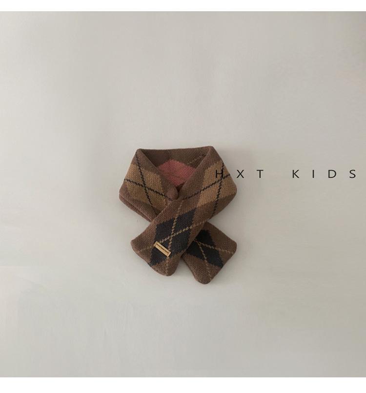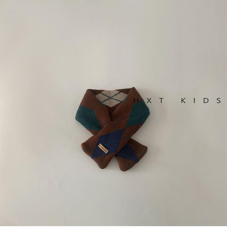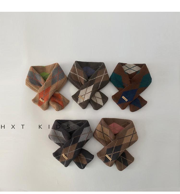 Bufanda para niños, otoño e invierno, gruesa, cálida, estilo británico, con contraste de colores y cuello cruzado de diamantes, ropa de bebé de moda para niños.