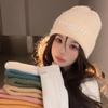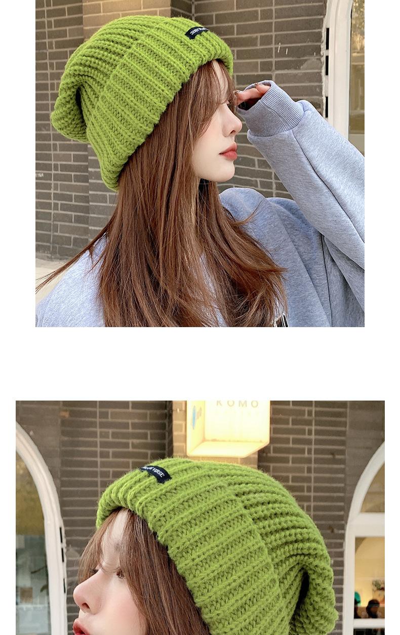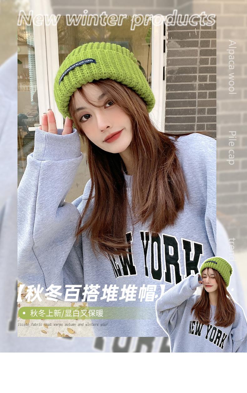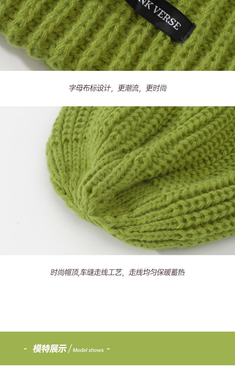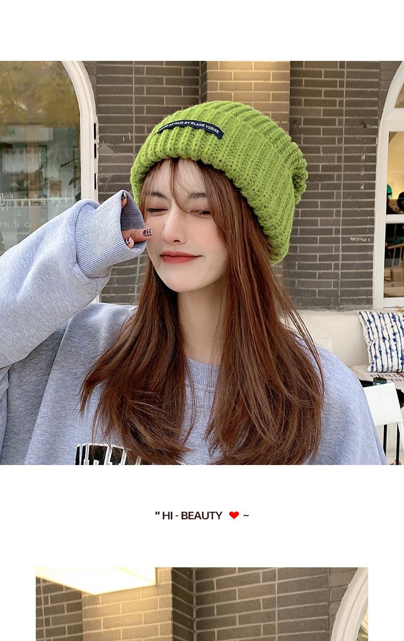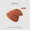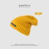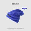 Gorro de lana con etiqueta de tela y letras de estilo coreano para otoño e invierno, combina con todo, moderno, gorro frío, grueso y cálido, con protección para las orejas, de punto para mujer.