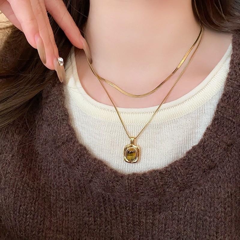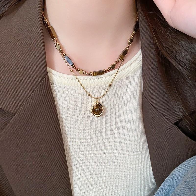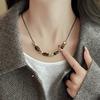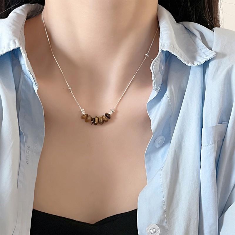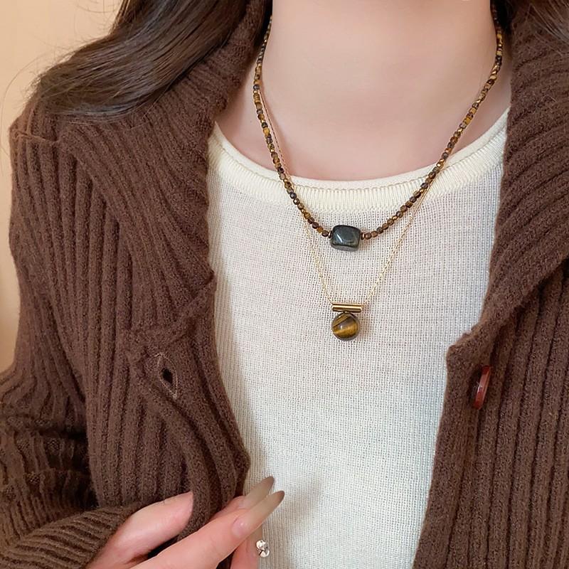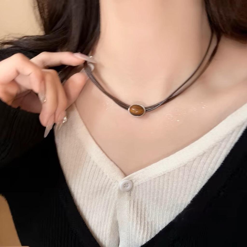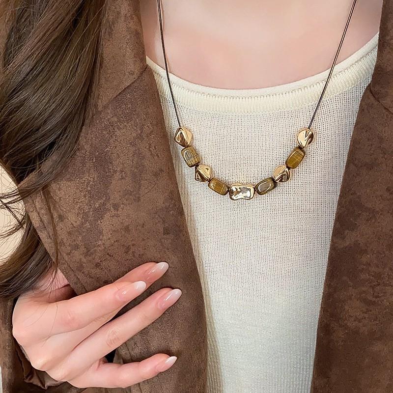 Collar de ojo de tigre marrón electrochapado en oro auténtico, elegante cadena de clavícula de moda, estilo retro, cadena de lana de alta gama, accesorios para collar.