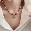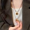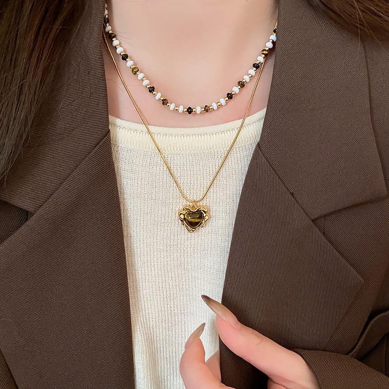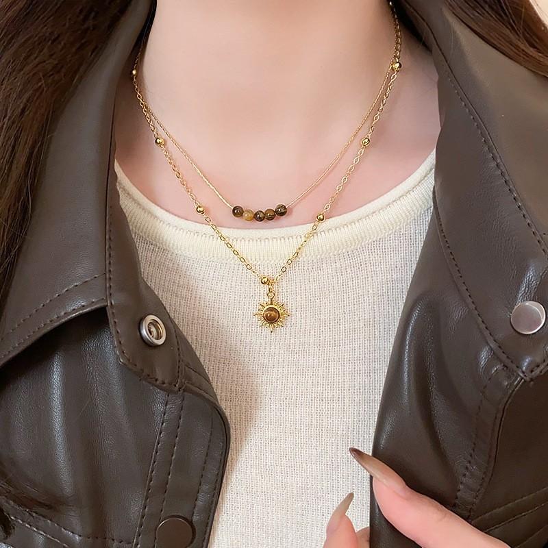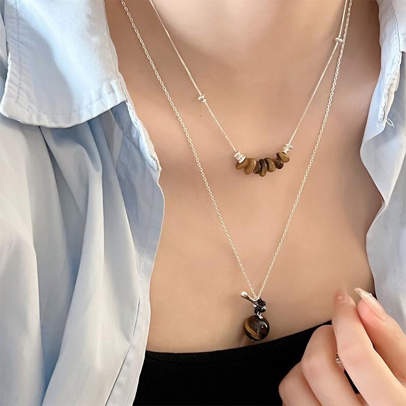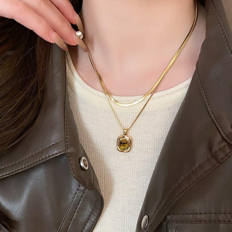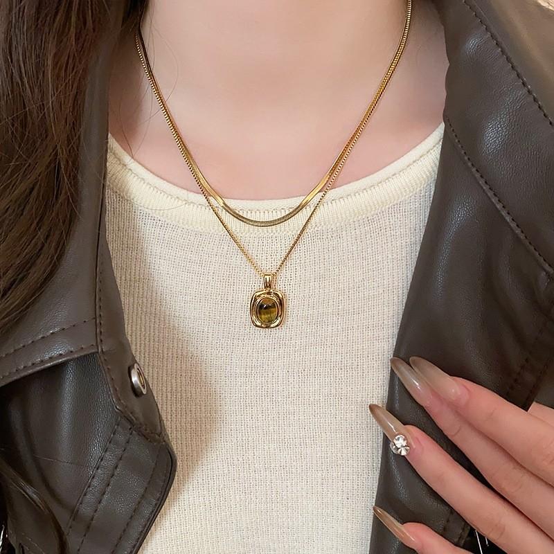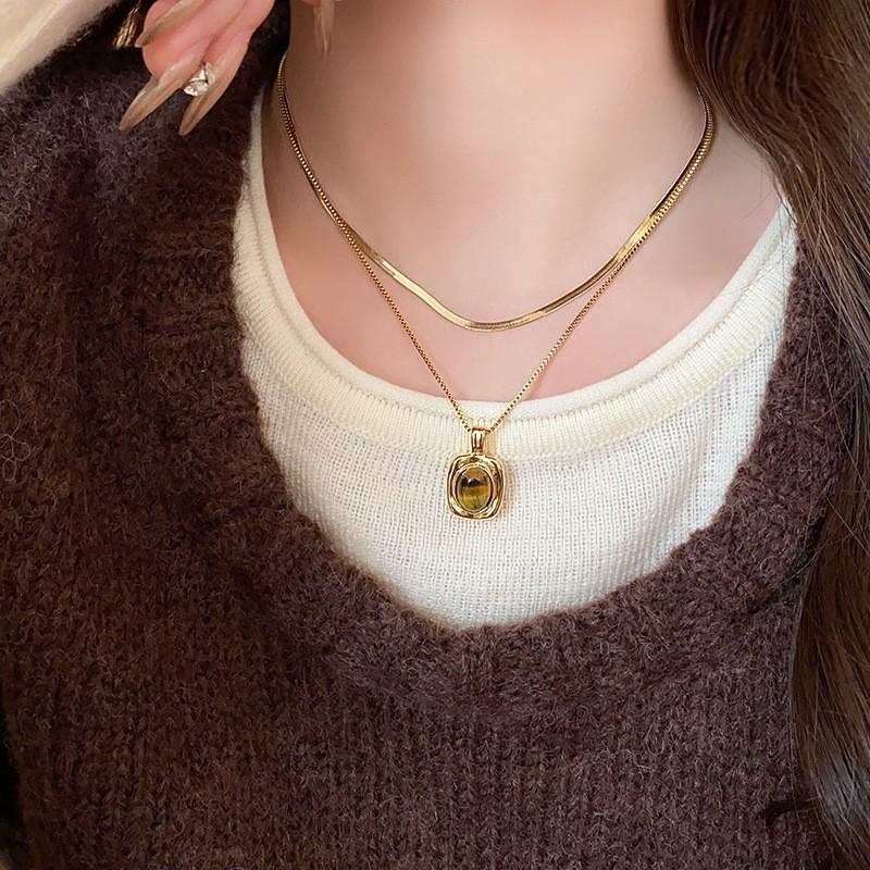 Collar de ojo de tigre marrón electrochapado en oro auténtico, elegante cadena de clavícula de moda, estilo retro, cadena de lana de alta gama, accesorios para collar.