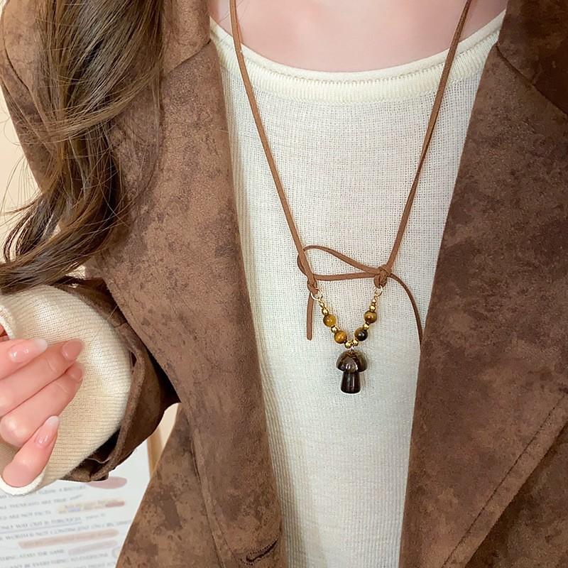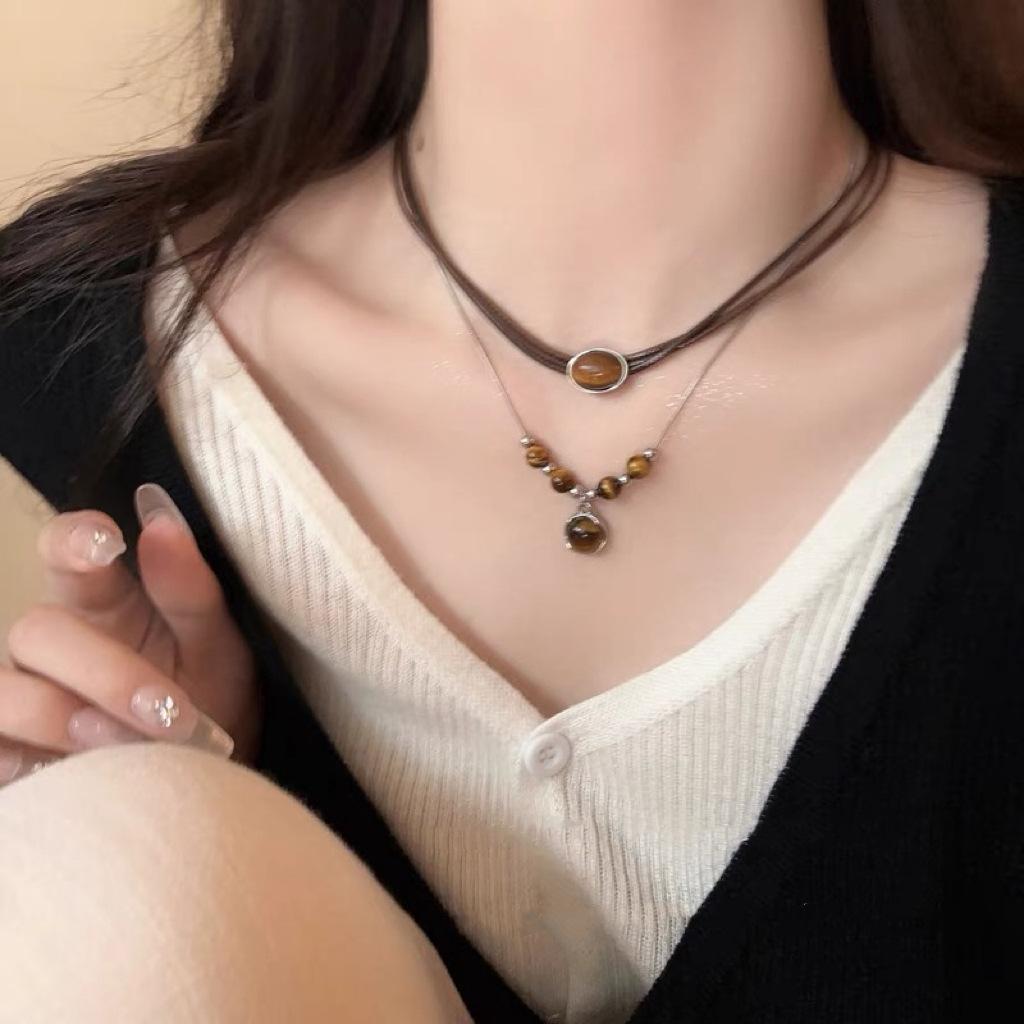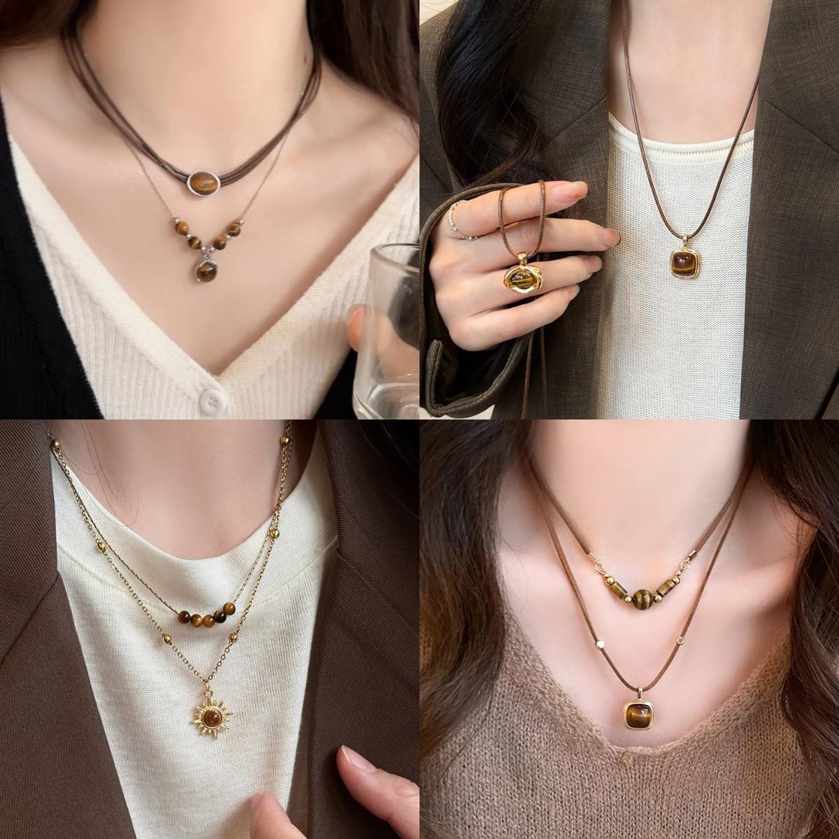 1#Necklace-gold-brown-round, 4#Necklace-silver-brown round, 6#Necklace-brown double-layer leather (two-piece s...