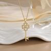 [Acero de titanio] Elegante y lujoso collar de diamantes con circonitas de cereza y diamantes para mujer, cadena de clavícula a juego. Cadena de acero de titanio.