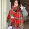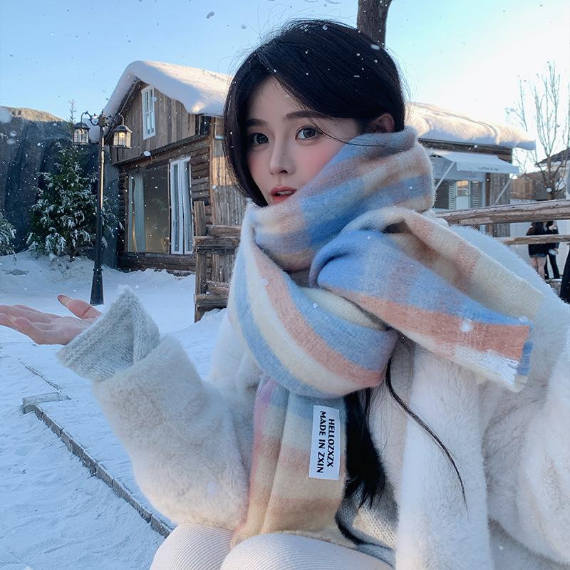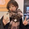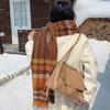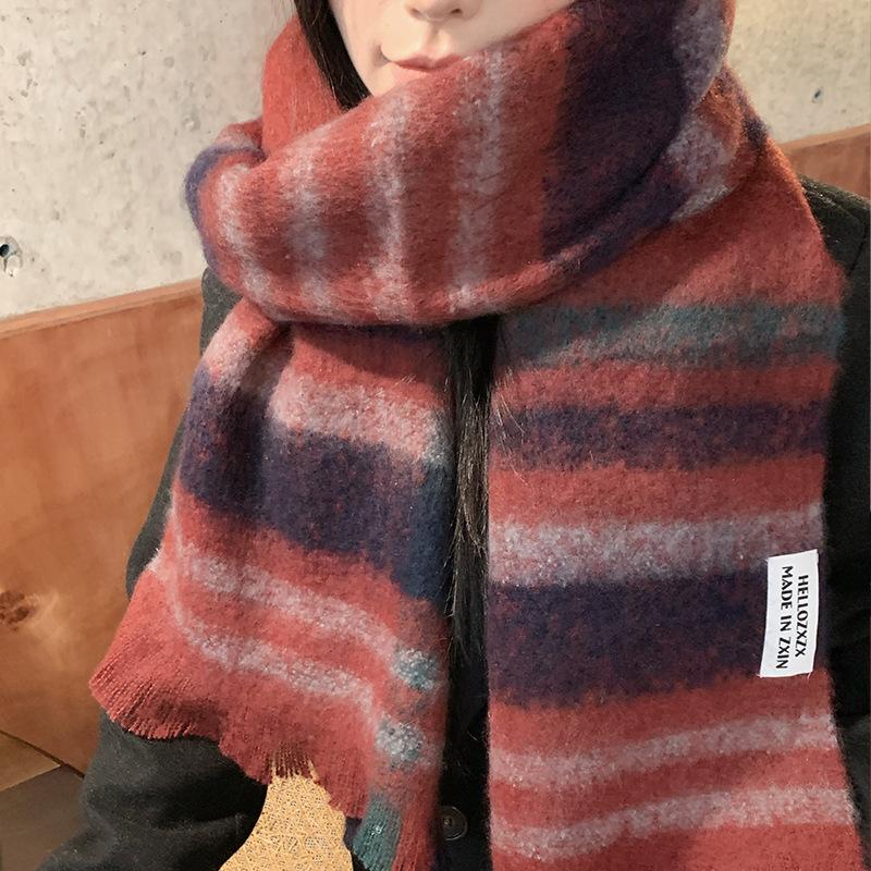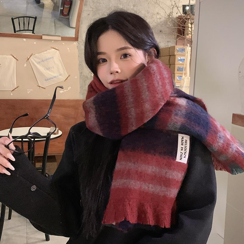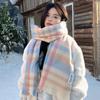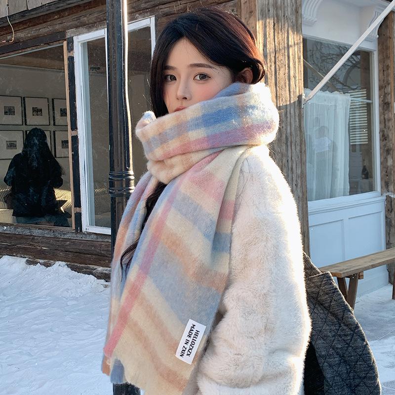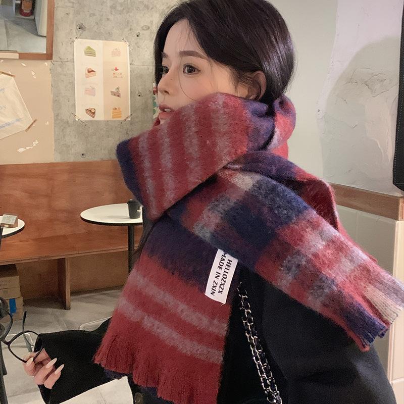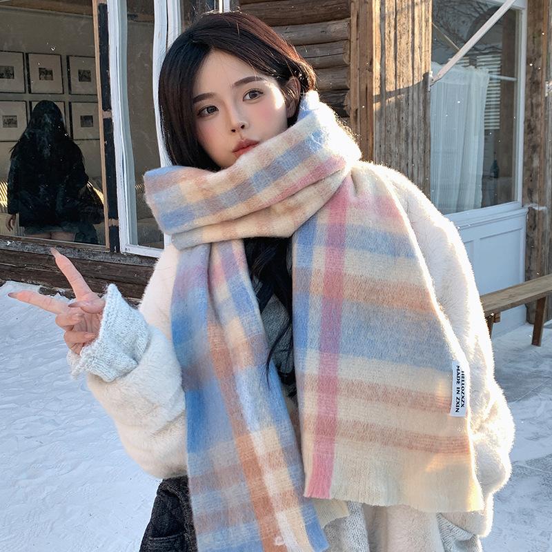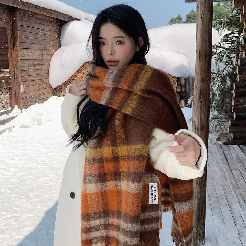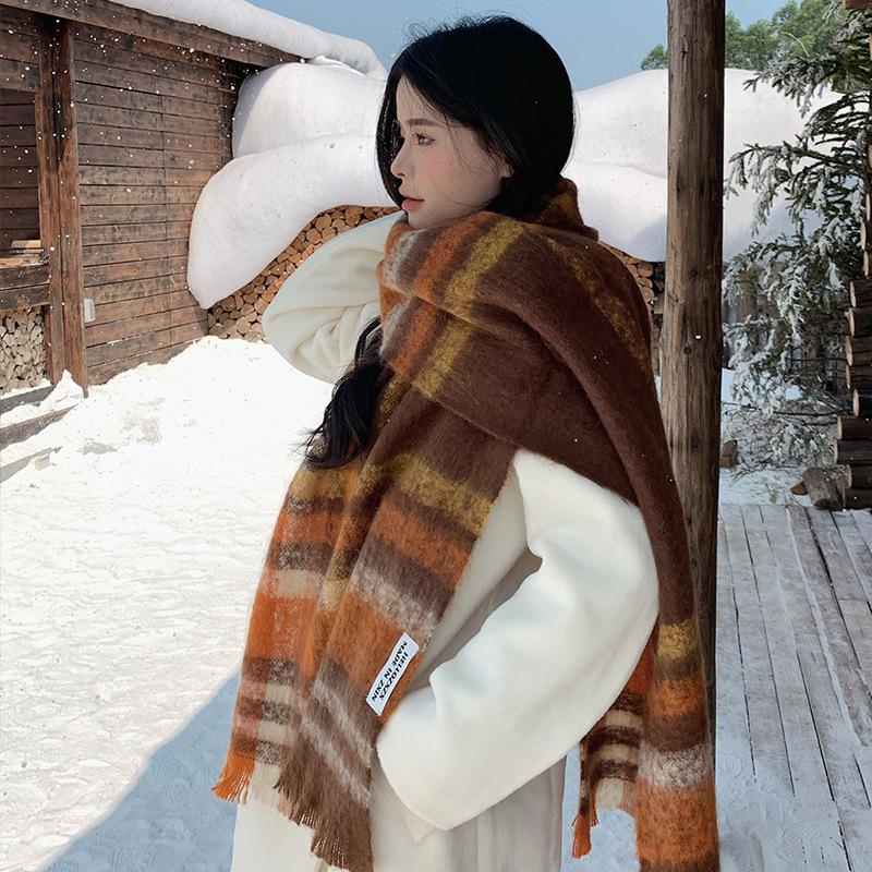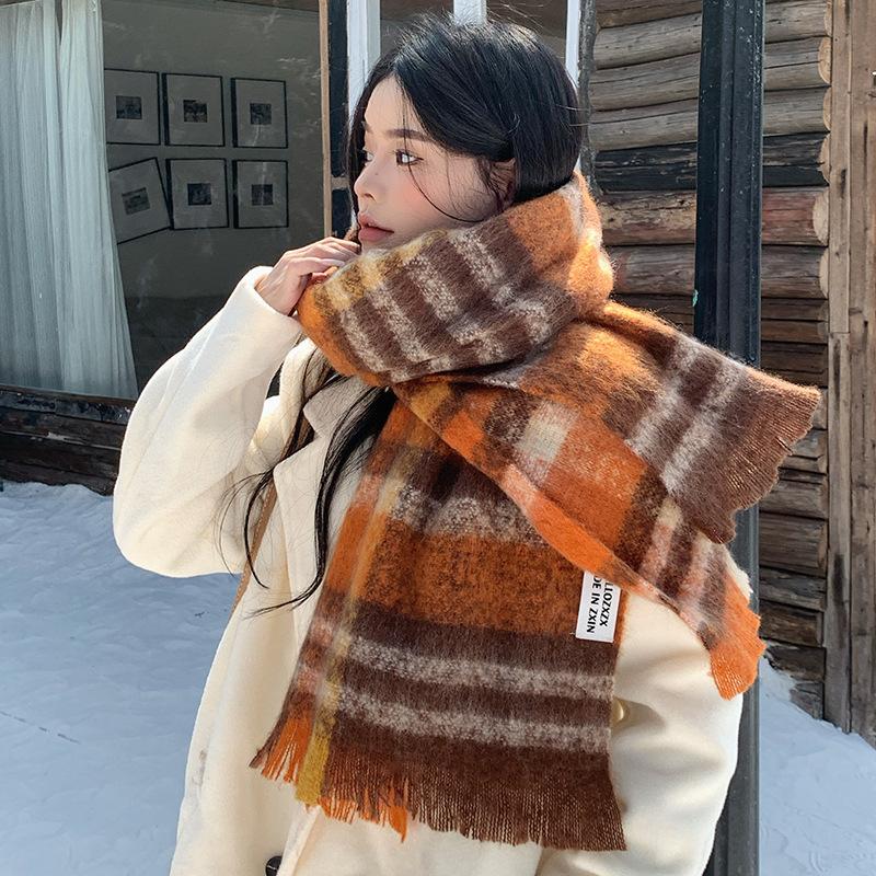 Bufanda a cuadros para mujer, otoño e invierno, tejida, nueva, Maillard Mahair, combinable, gruesa, cálida, para estudiantes.