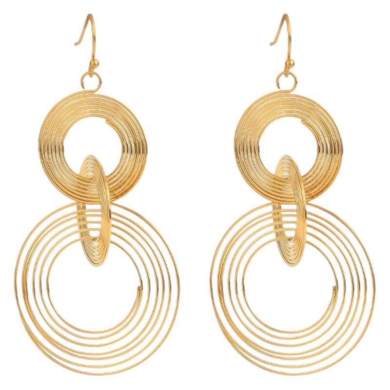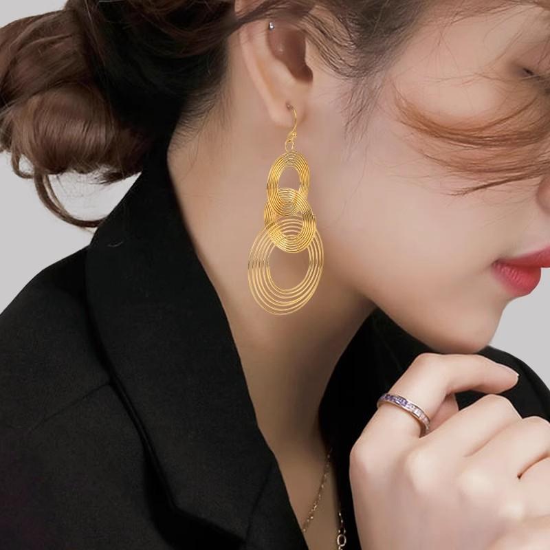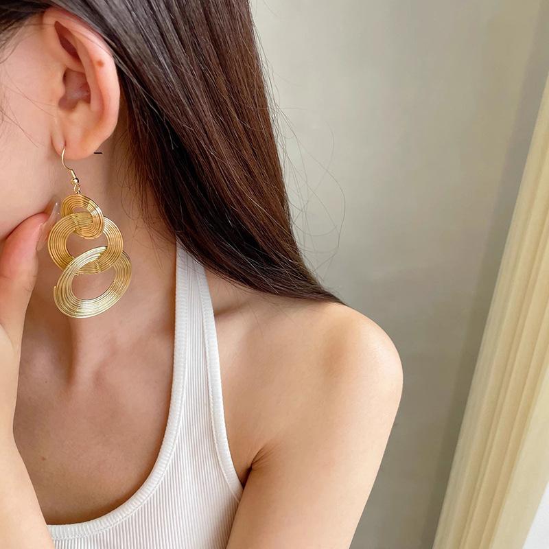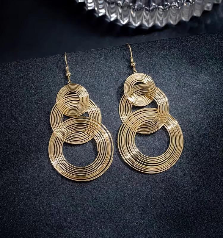 Pendientes redondos huecos de múltiples capas exagerados, pendientes largos y ligeros de lujo europeos y americanos, pendientes elegantes de celebridades con personalidad de nicho.