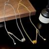 Comercio exterior transfronterizo al por mayor, colgante de esmeralda europea y americana, collar de acero de titanio, nicho femenino, luz de lujo, chapado en oro de 18 quilates, sensación de alta calidad